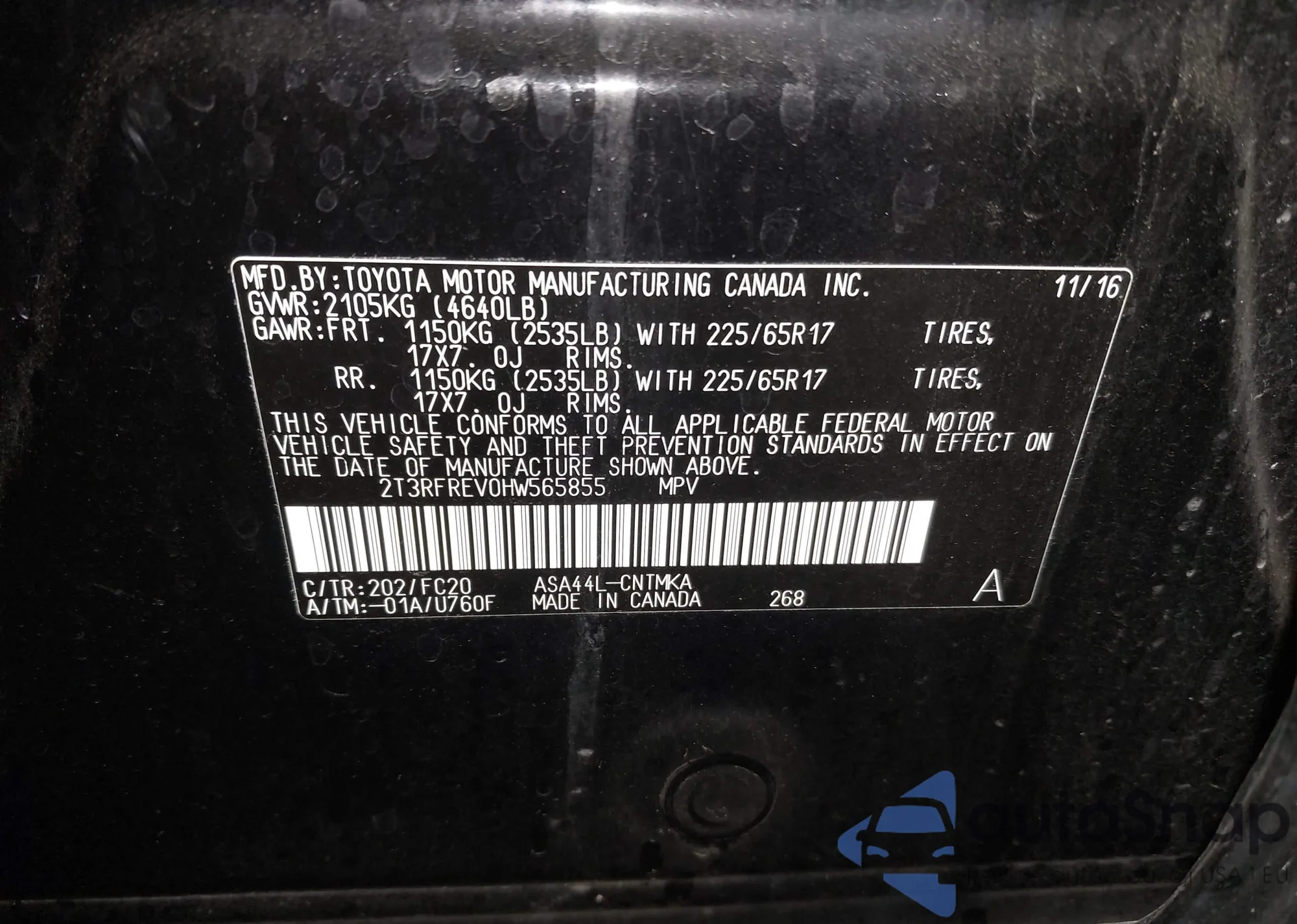 • VIN 3TMAZ5CN2HM045478