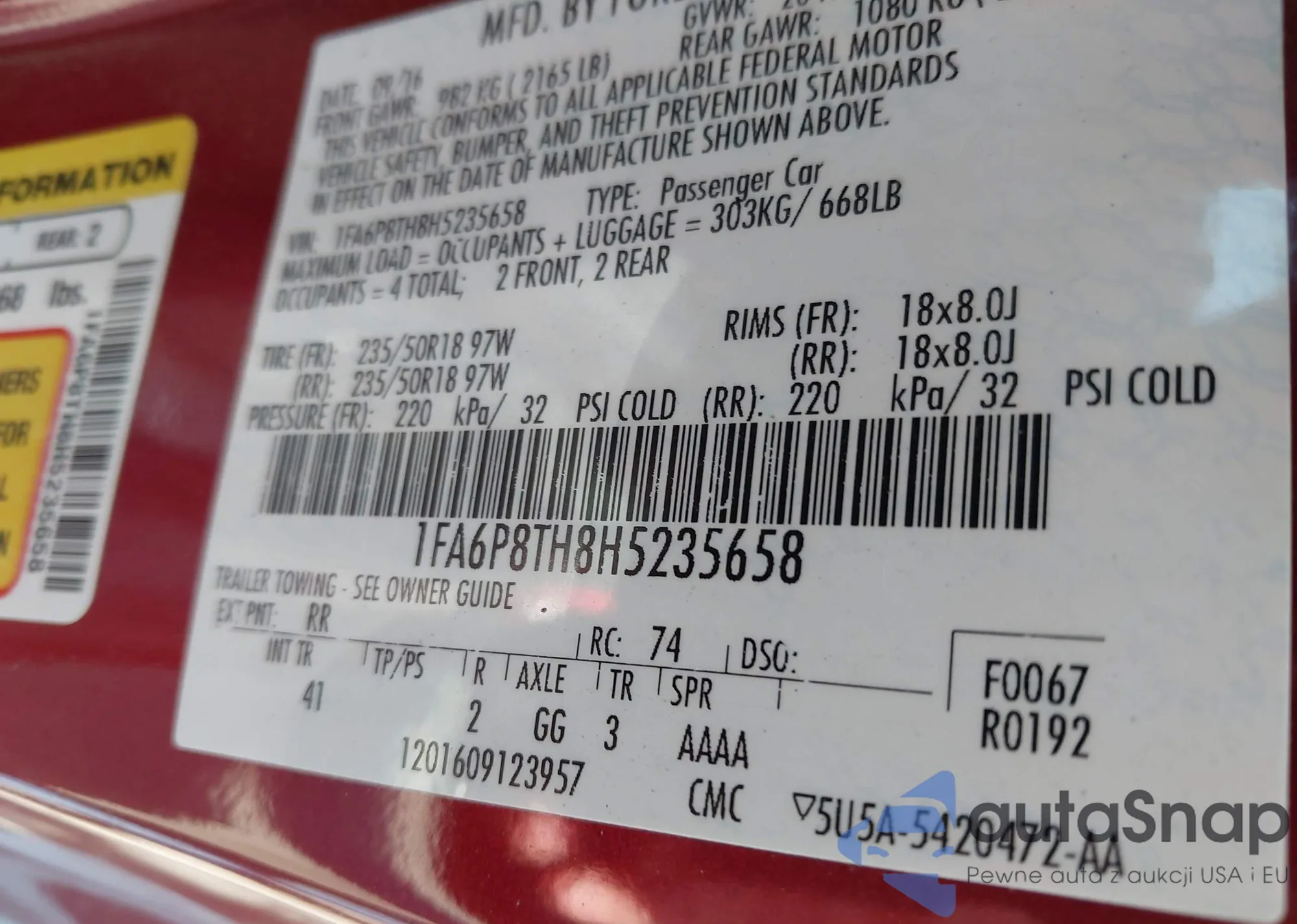 • VIN 1FA6P8TH8H5235658