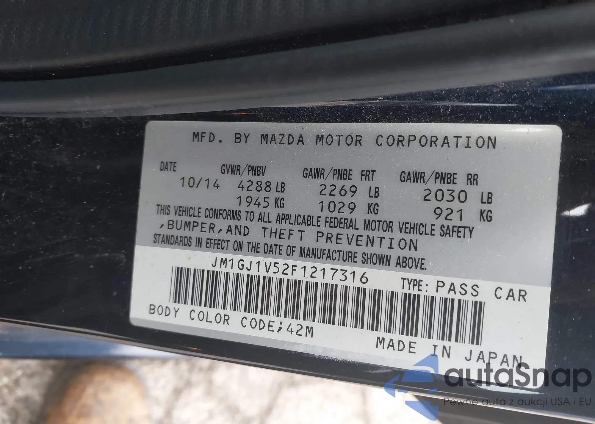 LOT: 43943277 VIN: JM1GJ1V52F1217316