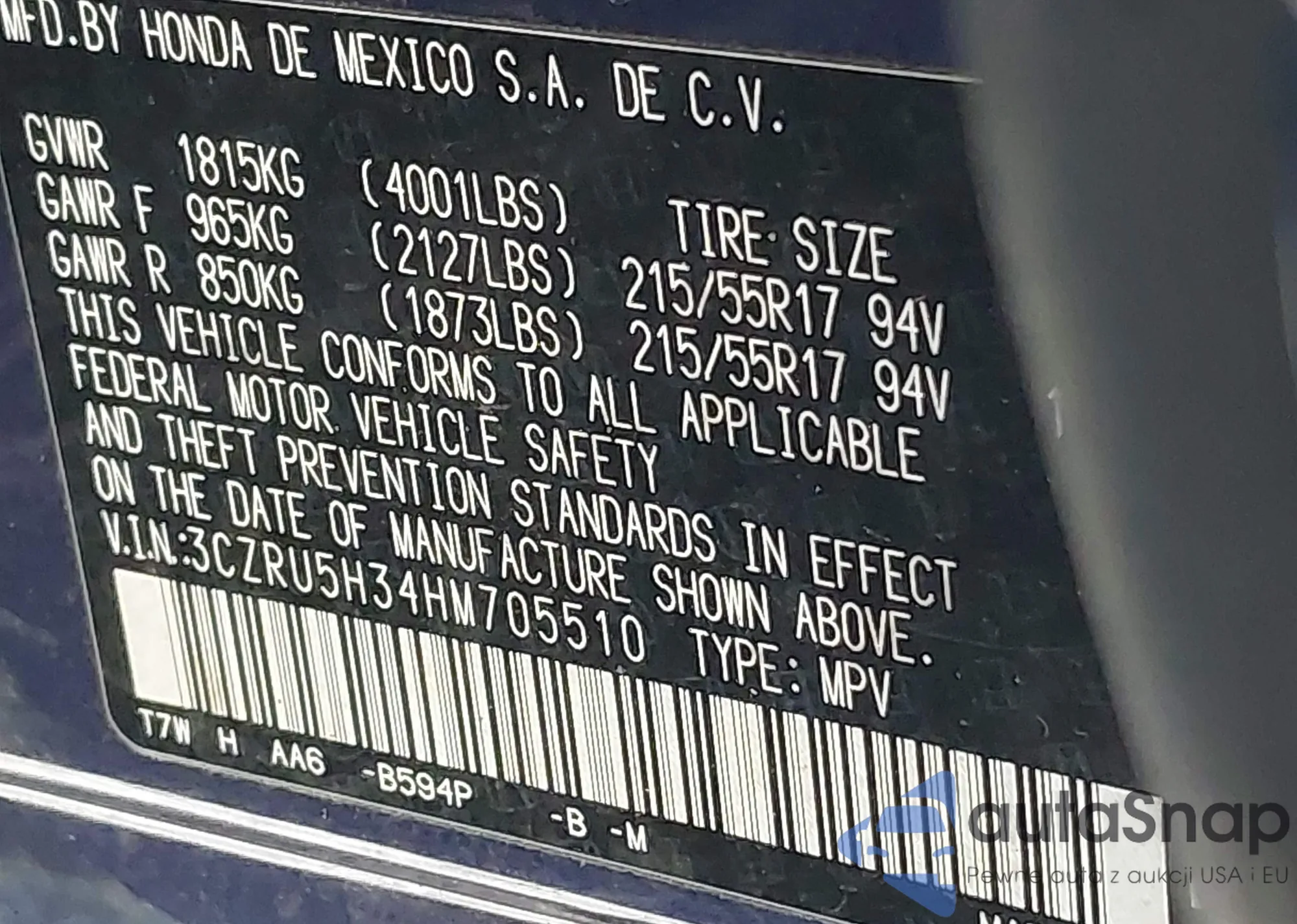 LOT: 44092419 VIN: 5FNYF28398B027643