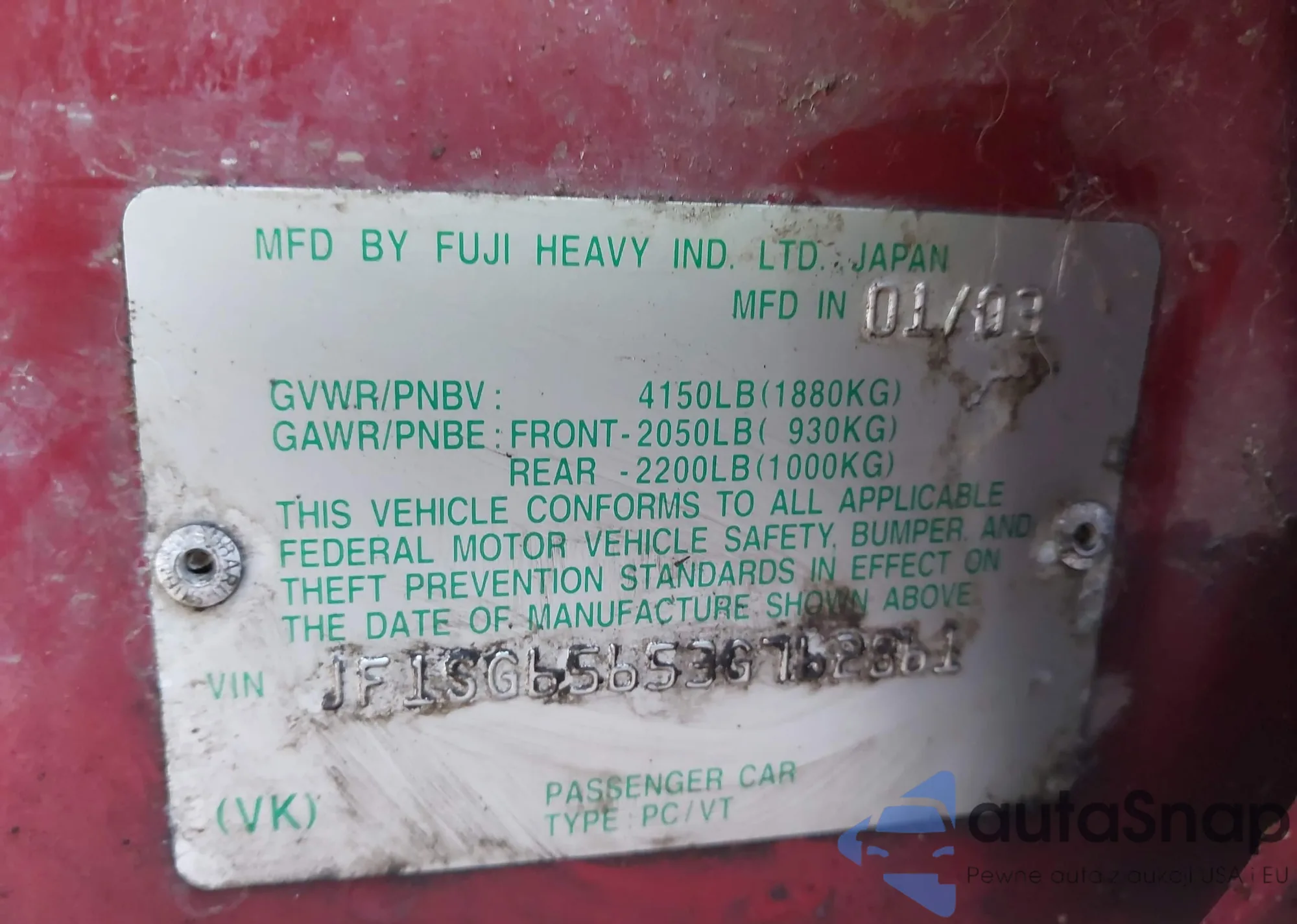 LOT: 44096648 VIN: JF1SG65653G762861