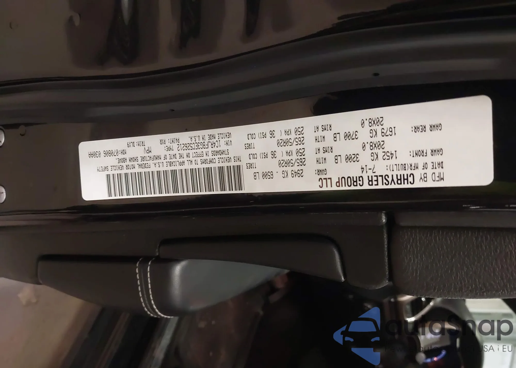 • VIN 1C4RJFBG3EC526212