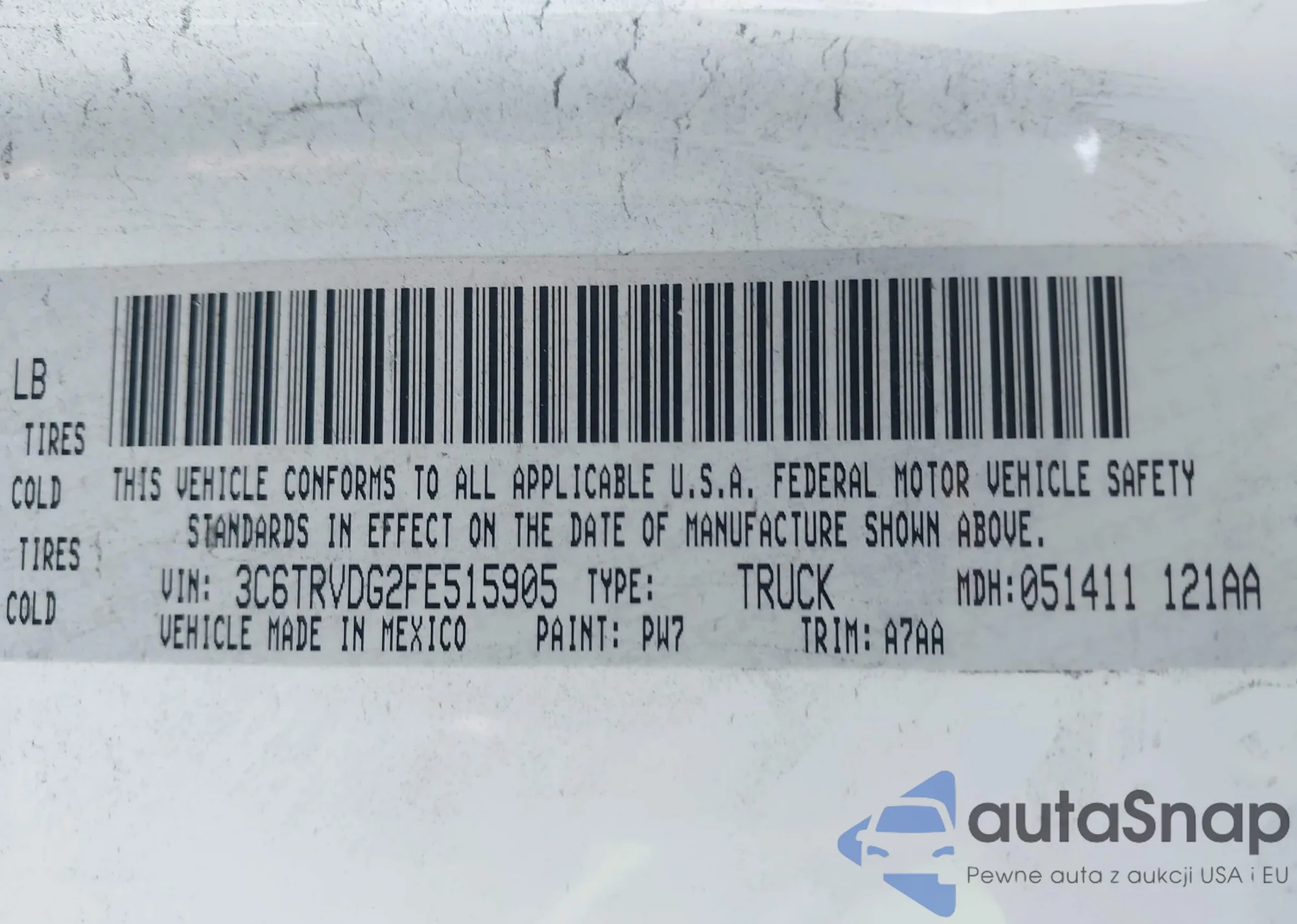 • VIN 3C6TRVDG2FE515905