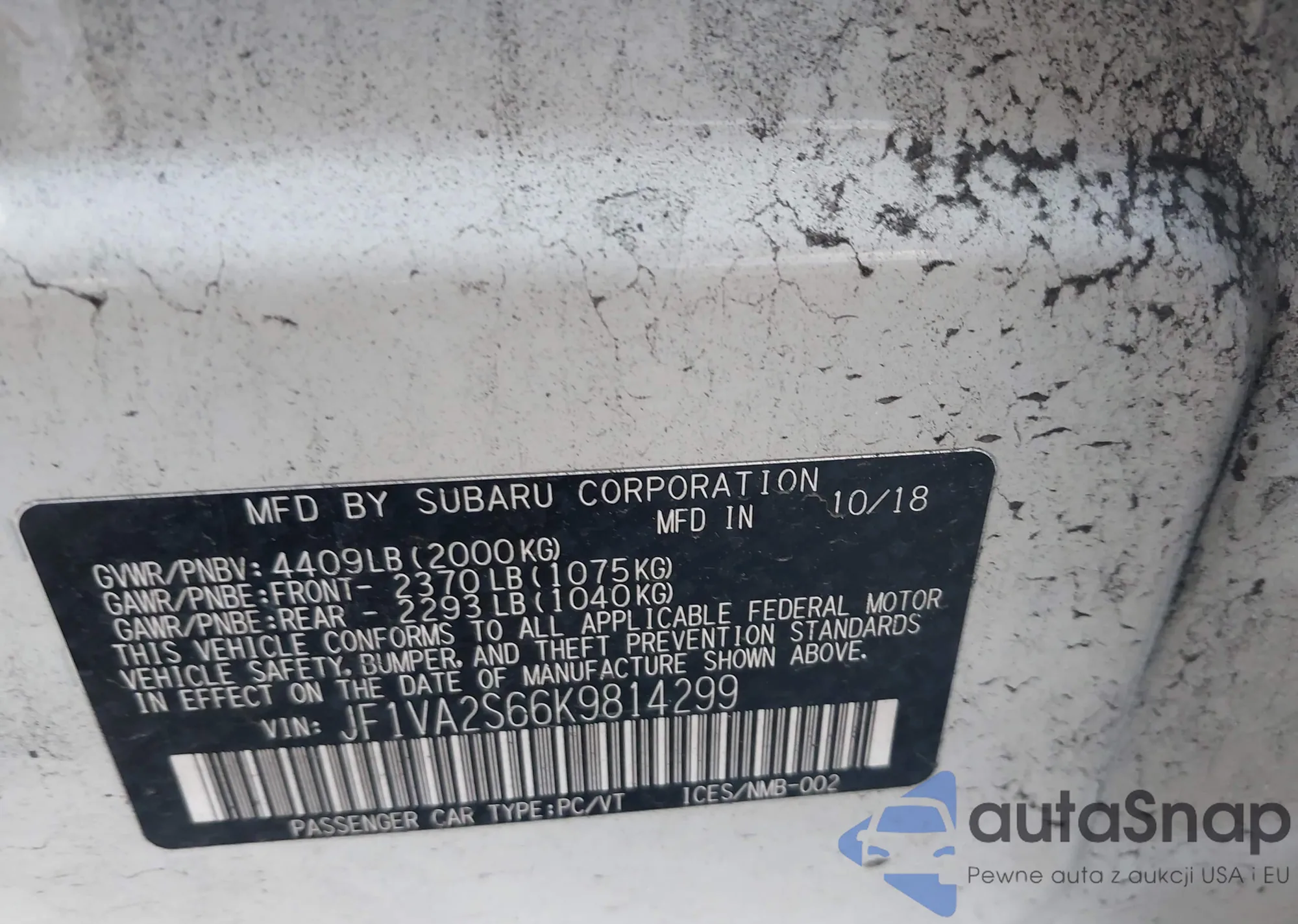 • VIN JF1VA2S66K9814299