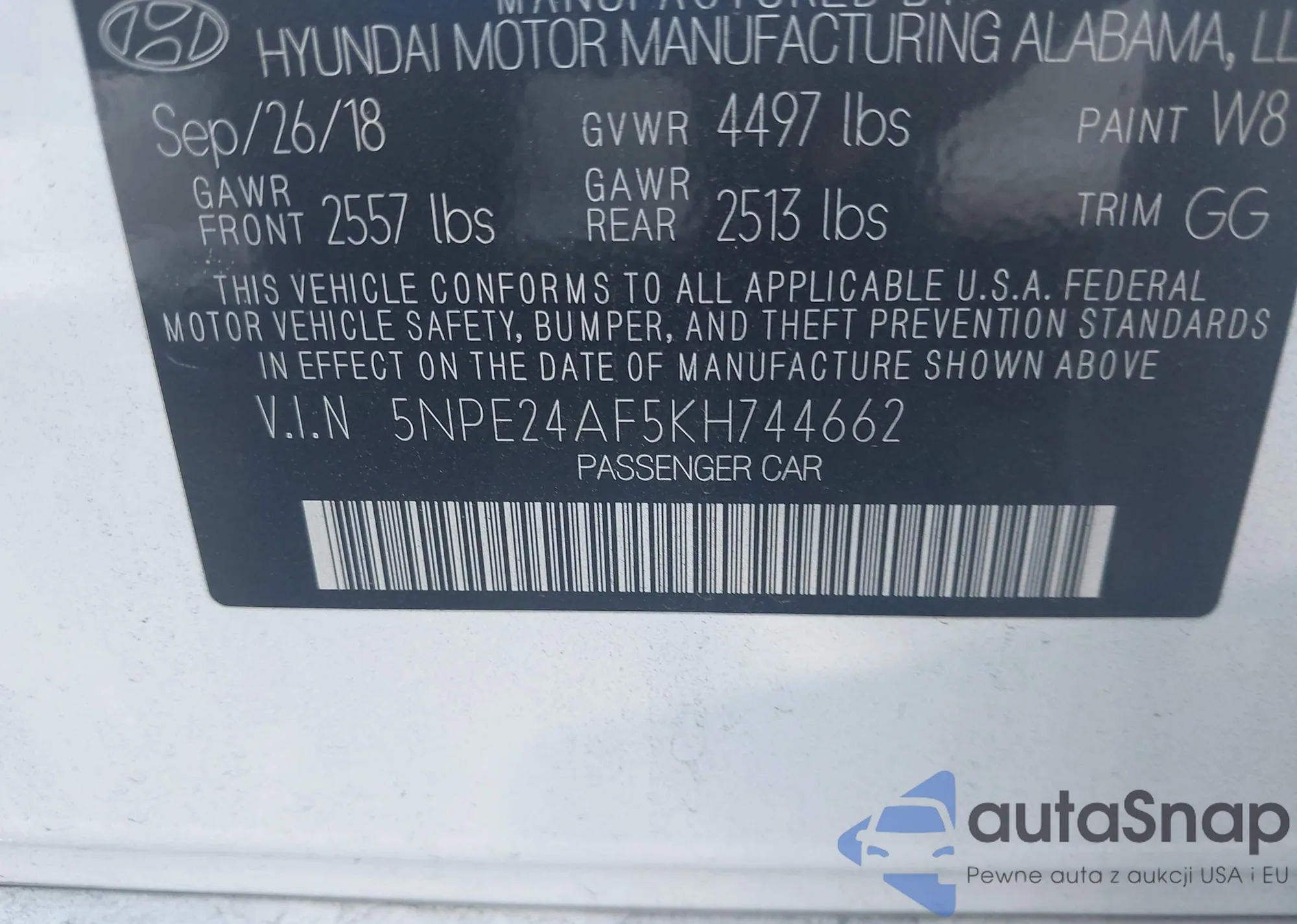 LOT: 43696353 VIN: ZN661YUA4KX335943