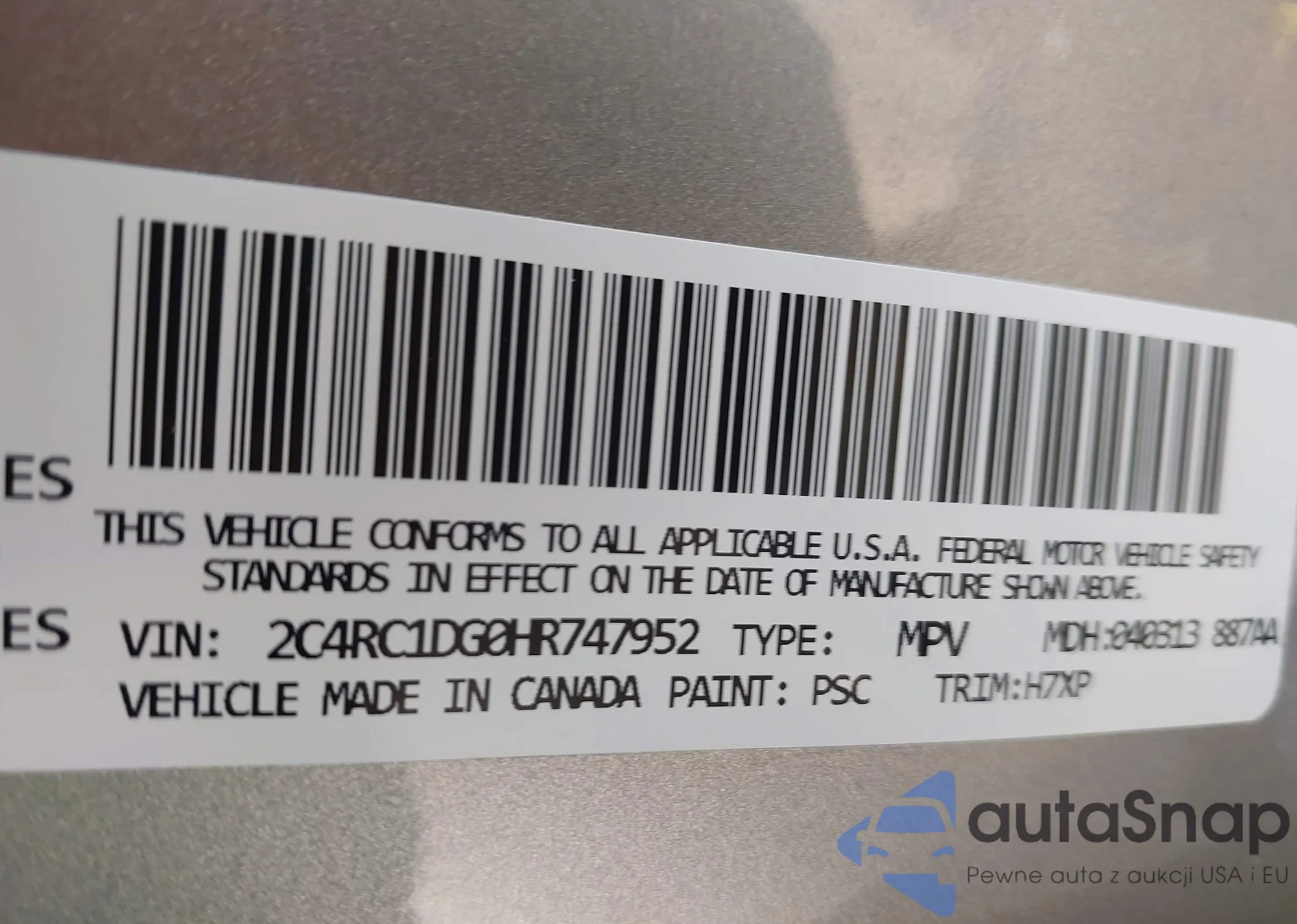 • VIN 2C4RC1DG0HR747952