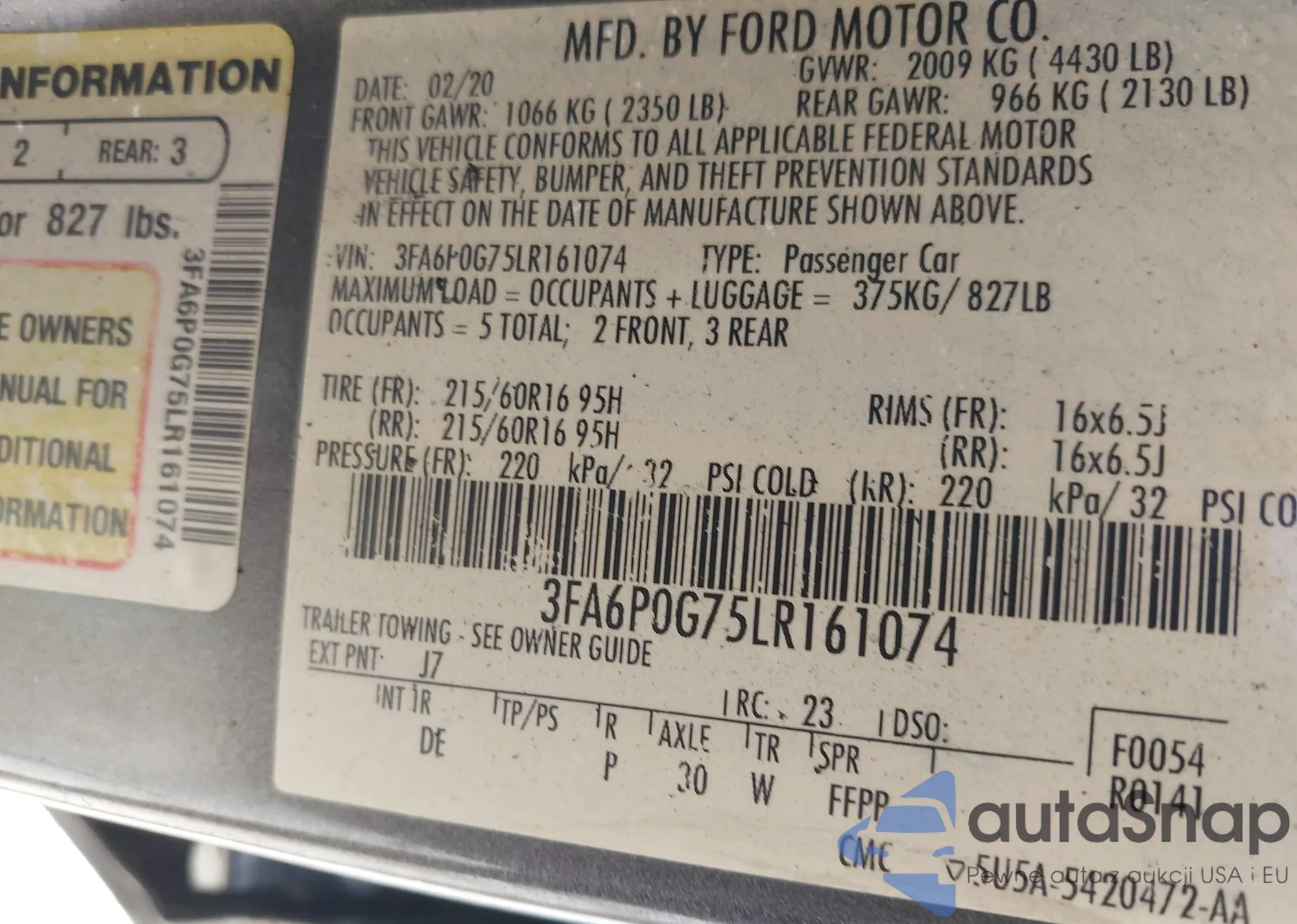 LOT: 43629192 VIN: JN1EV7AR5LM254588