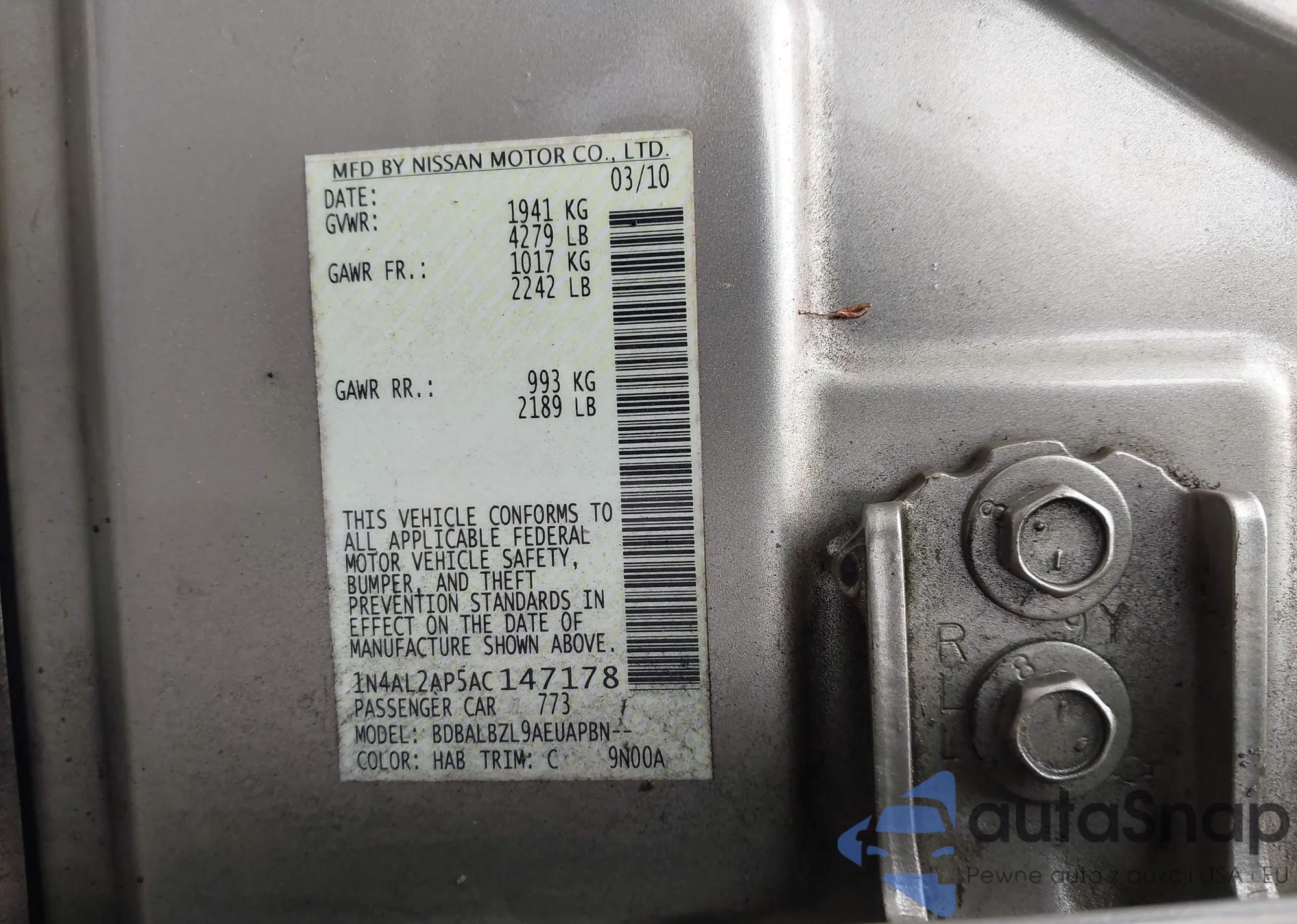 LOT: 43976284 VIN: 1N4AL2AP5AC147178