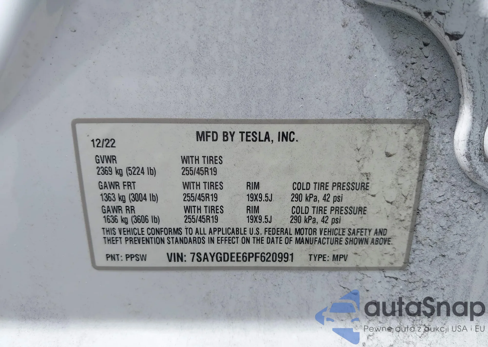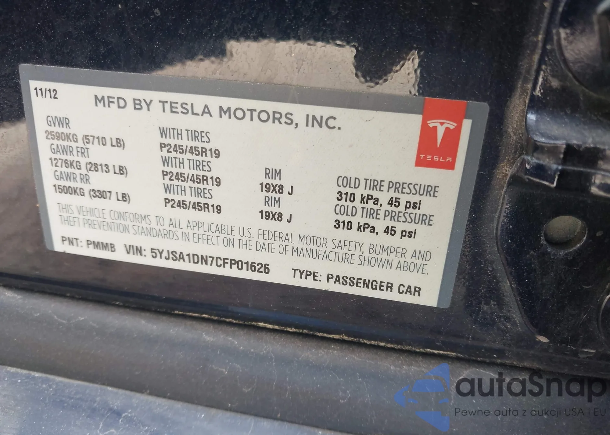 • VIN 5YJSA1DN7CFP01626
