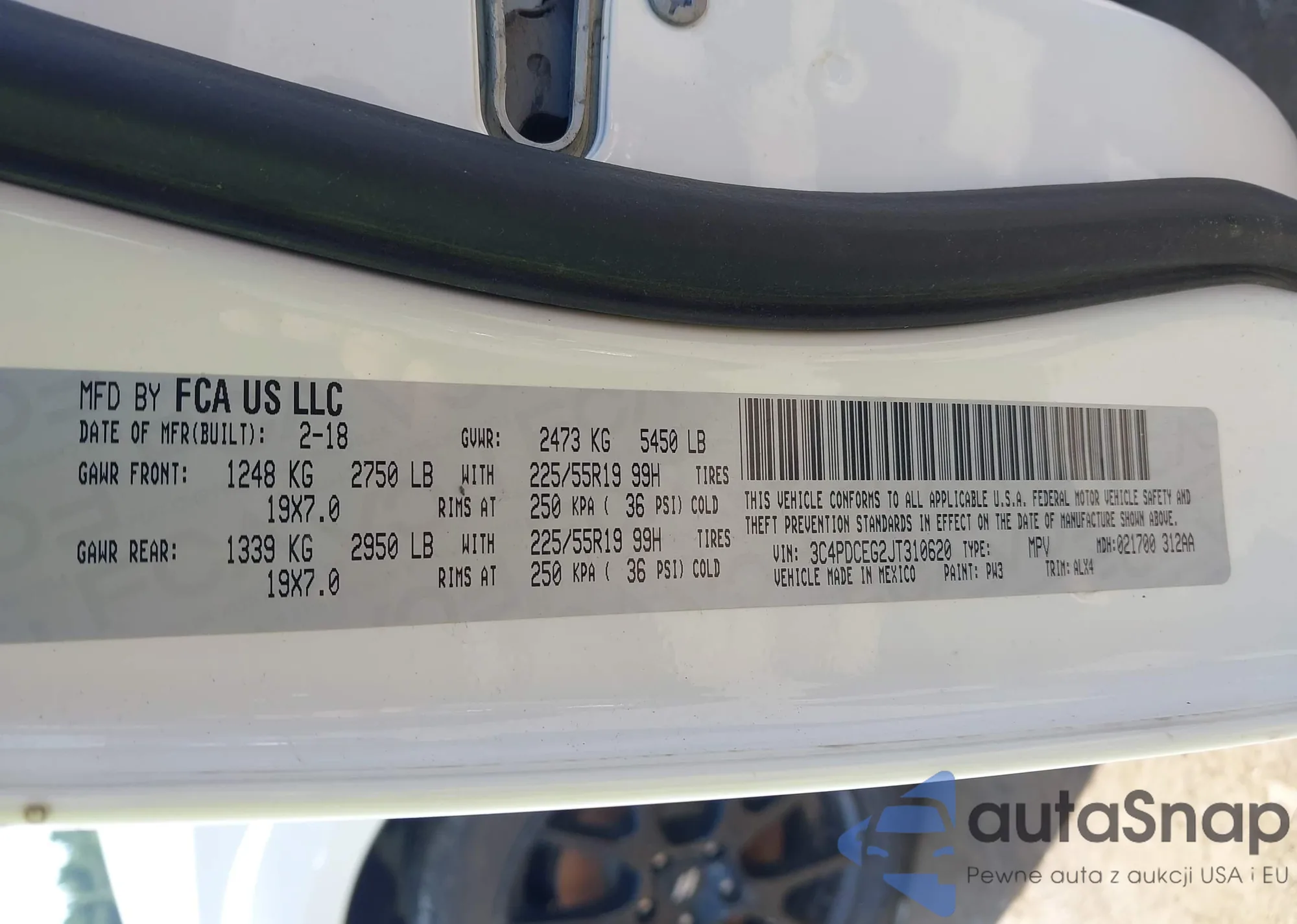 LOT: 42614910 VIN: 3C4PDCEG2JT310620