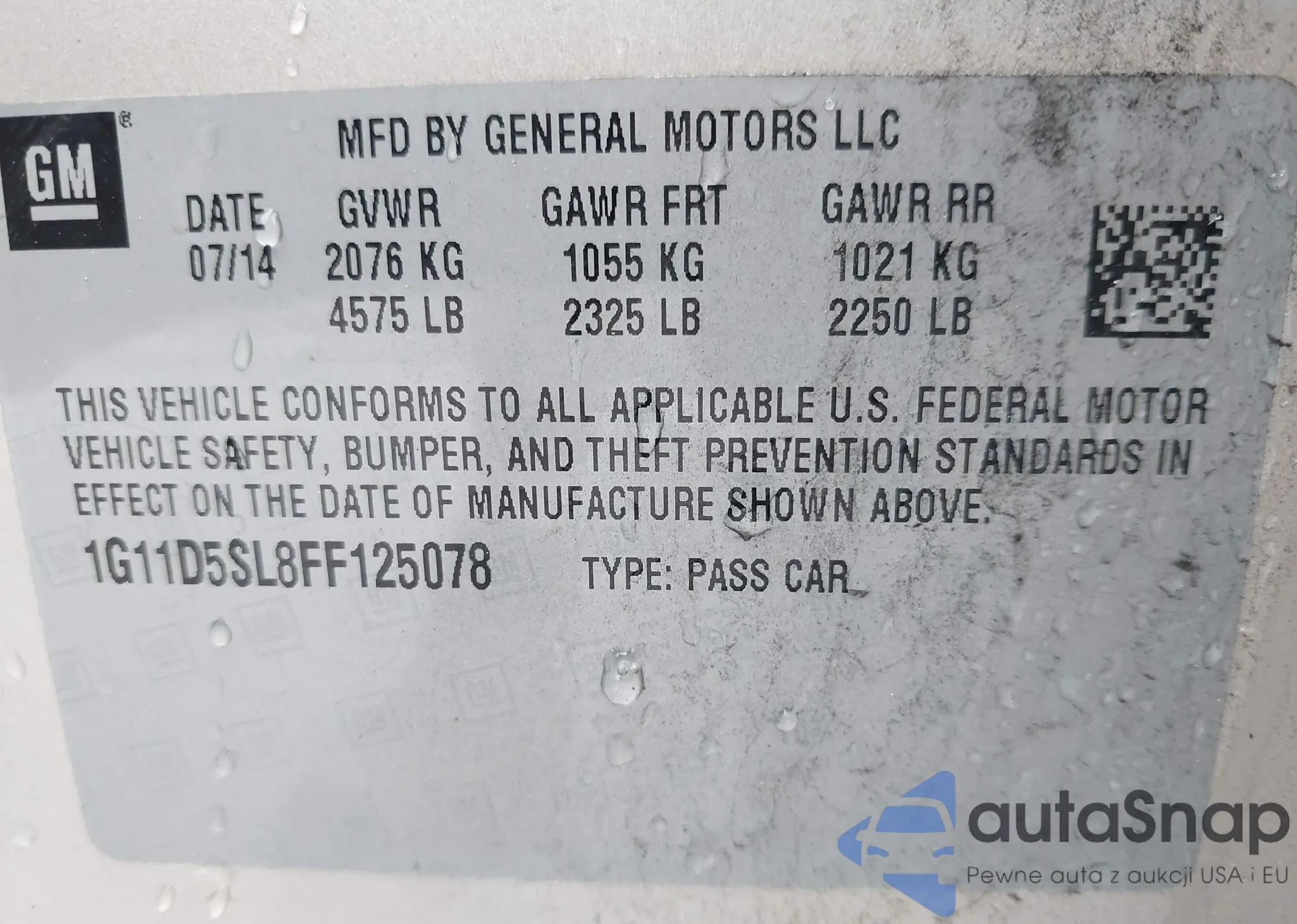 LOT: 42922531 VIN: 2G1WG5E31D1128515