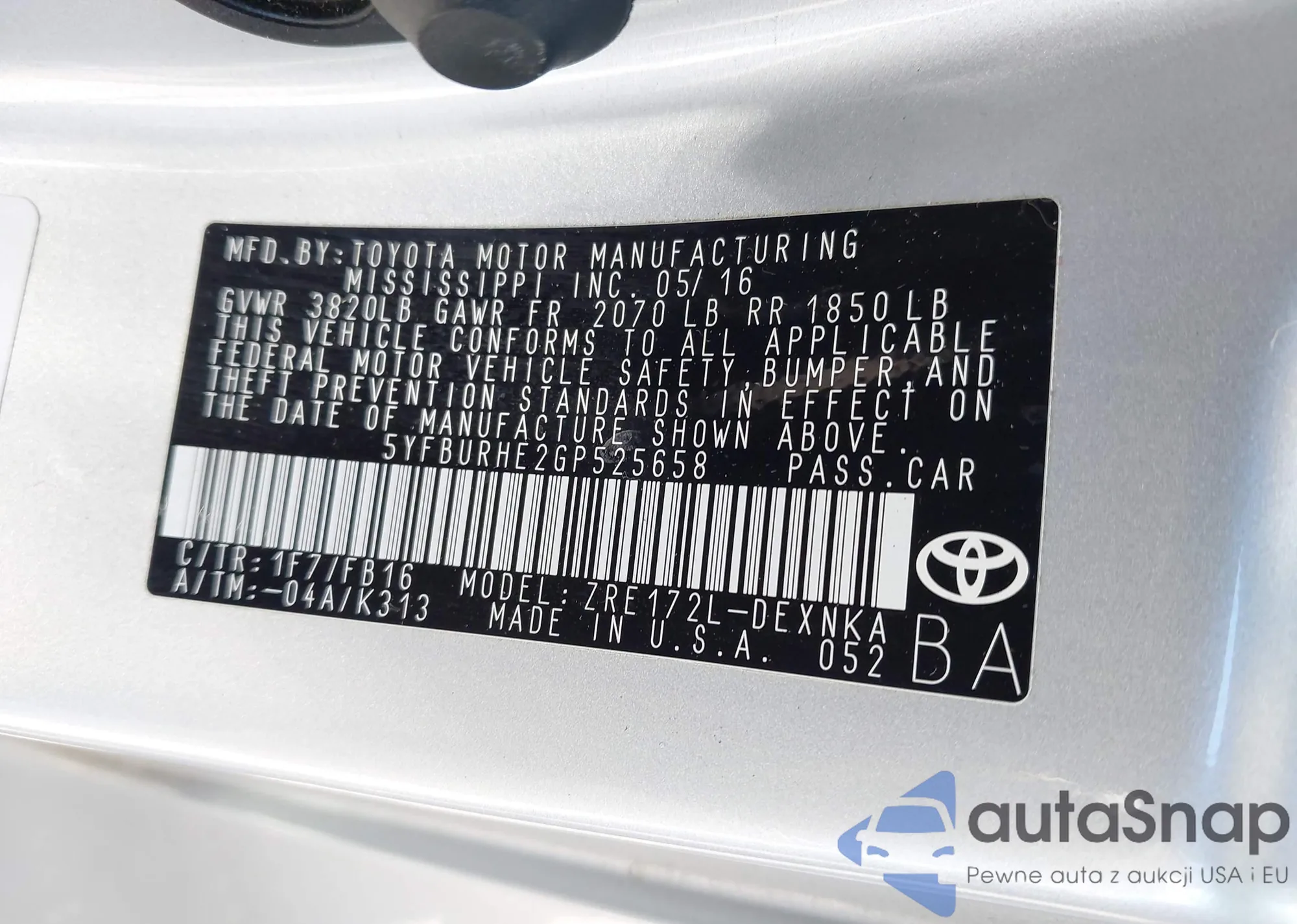 • VIN 5YFBURHE2GP525658