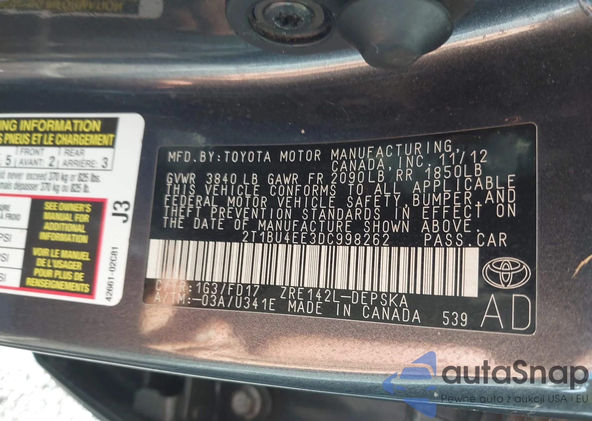 • VIN 2T1BU4EE3DC998262