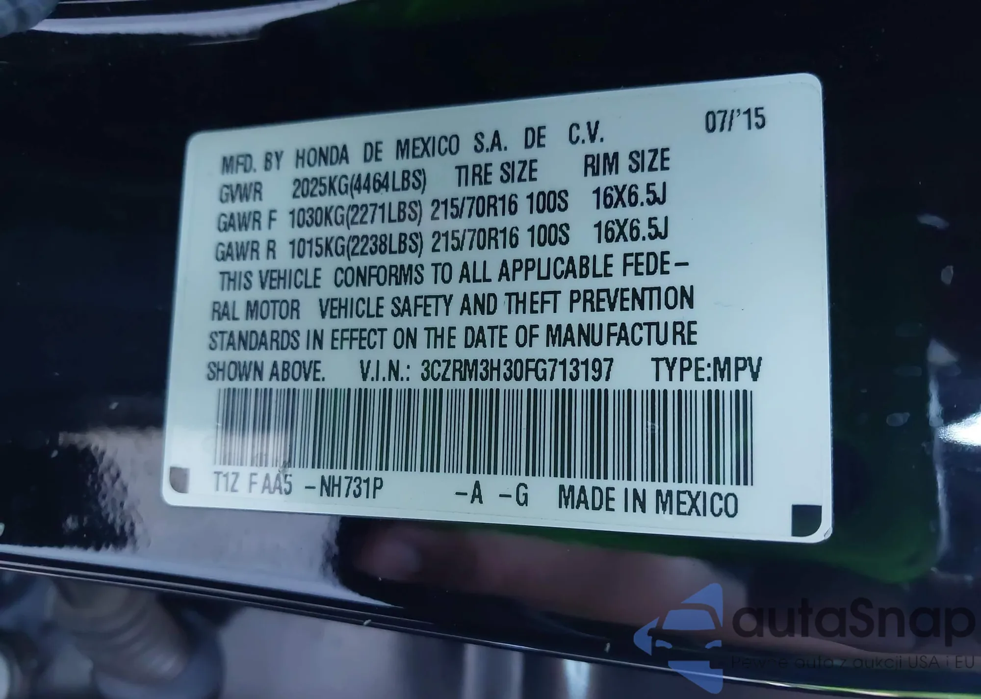 • VIN 3CZRM3H30FG713197