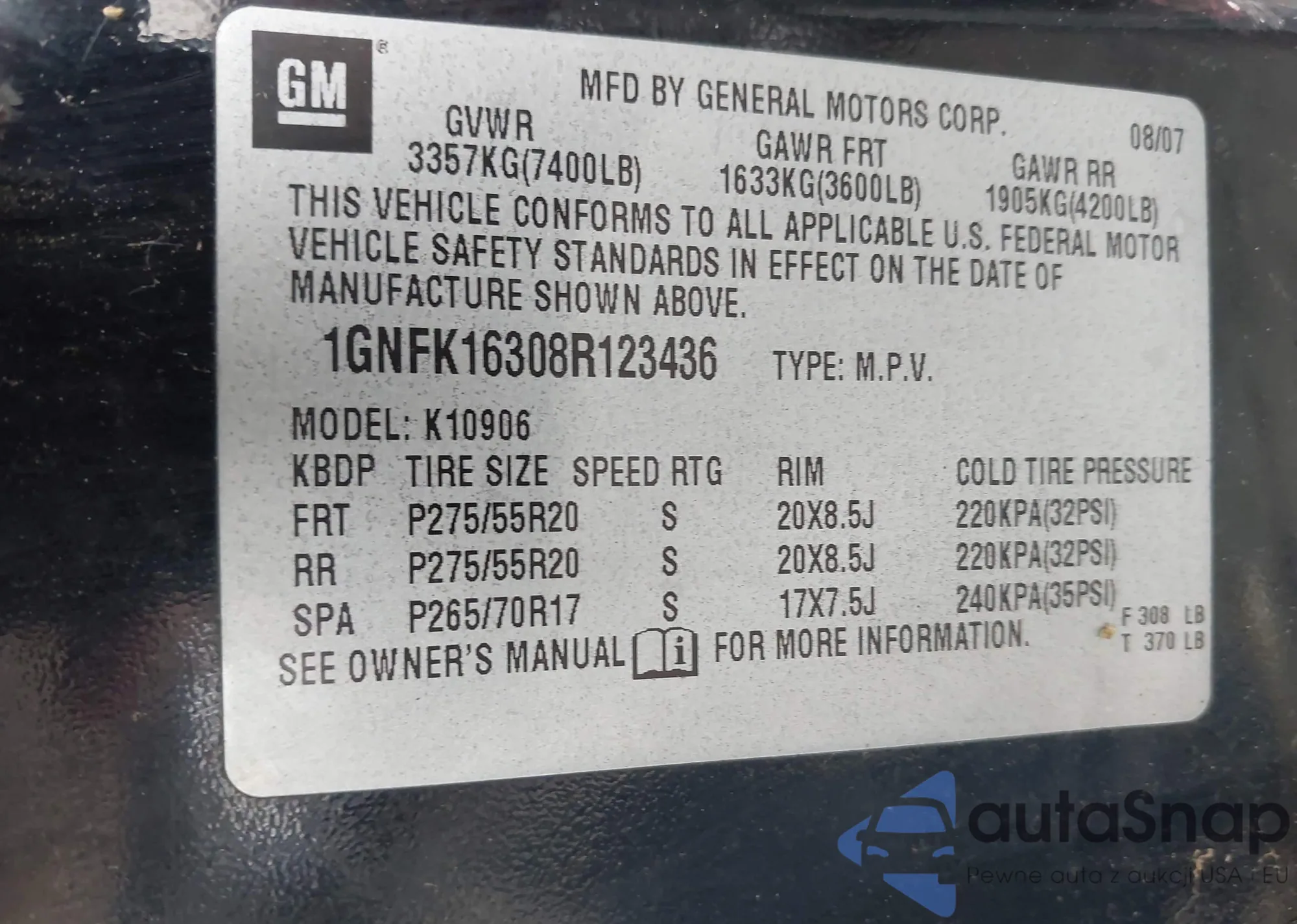LOT: 43642278 VIN: 1GNFK16308R123436