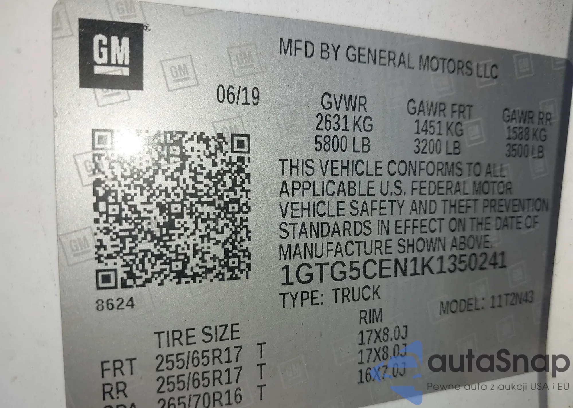 LOT: 43550833 VIN: 1GTG5CEN1K1350241