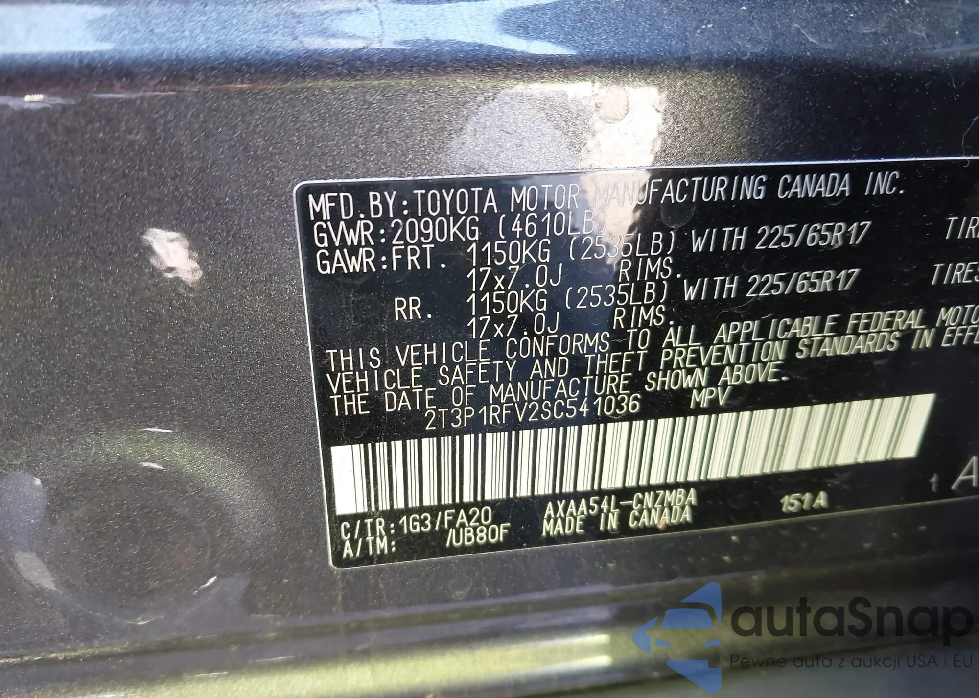 • VIN 2T3P1RFV2SC541036