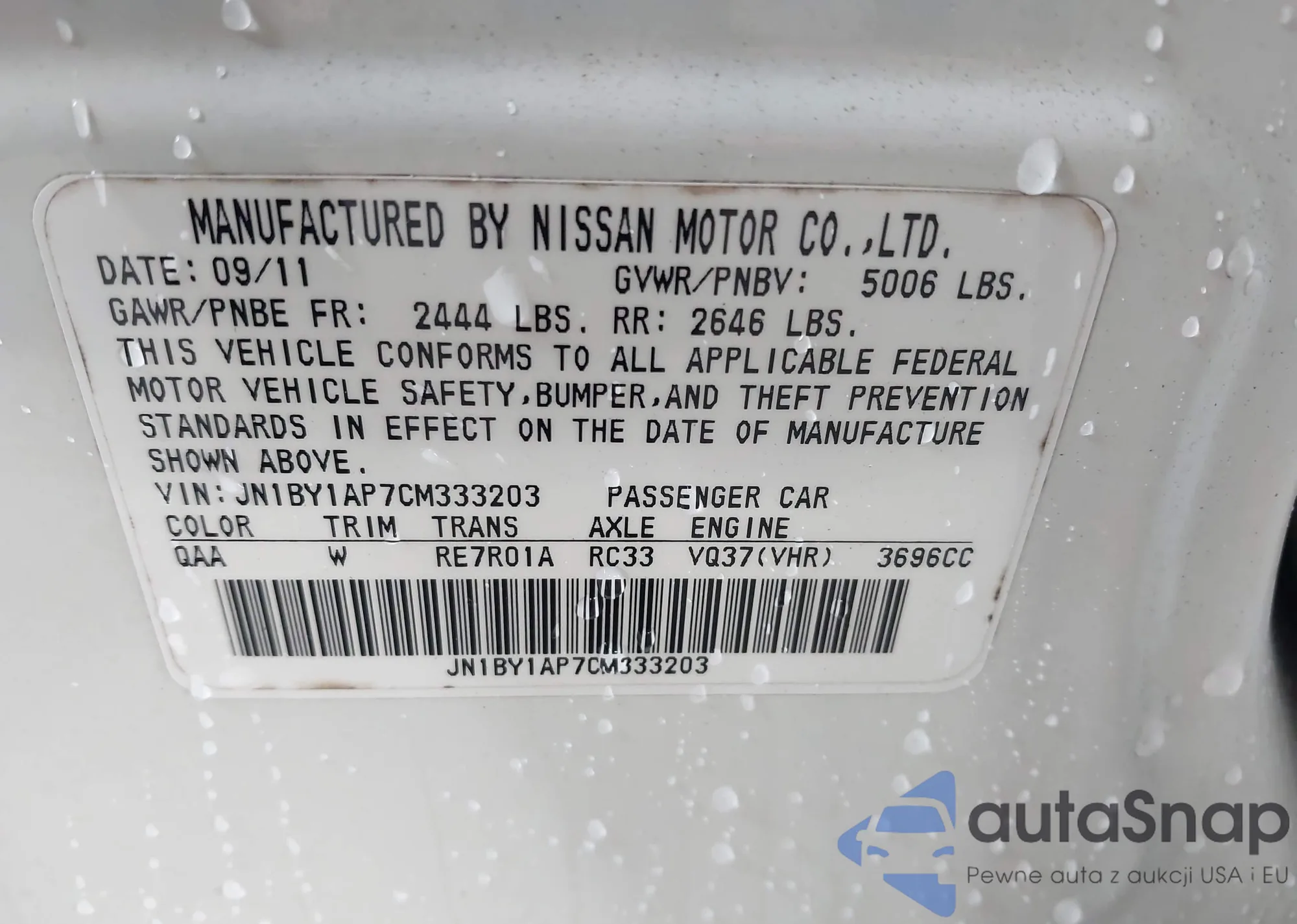 LOT: 43857530 VIN: JN1BY1AP7CM333203
