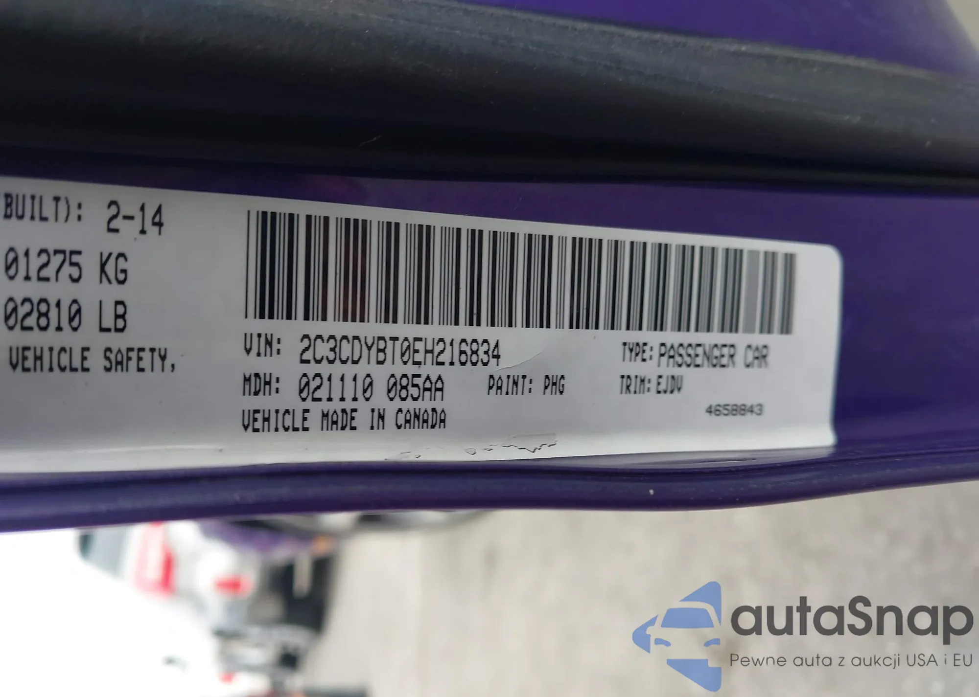 • VIN 2C3CDYBT0EH216834