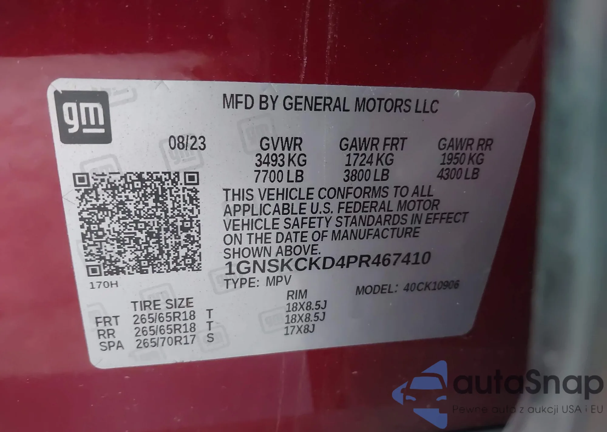 LOT: 43643067 VIN: 1GNSKCKD4PR467410