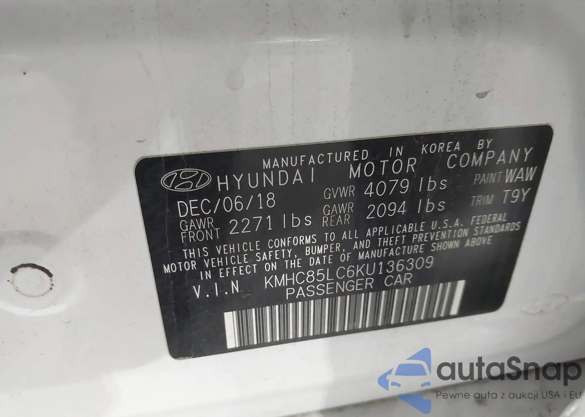 LOT: 43645050 VIN: KMHC85LC6KU136309