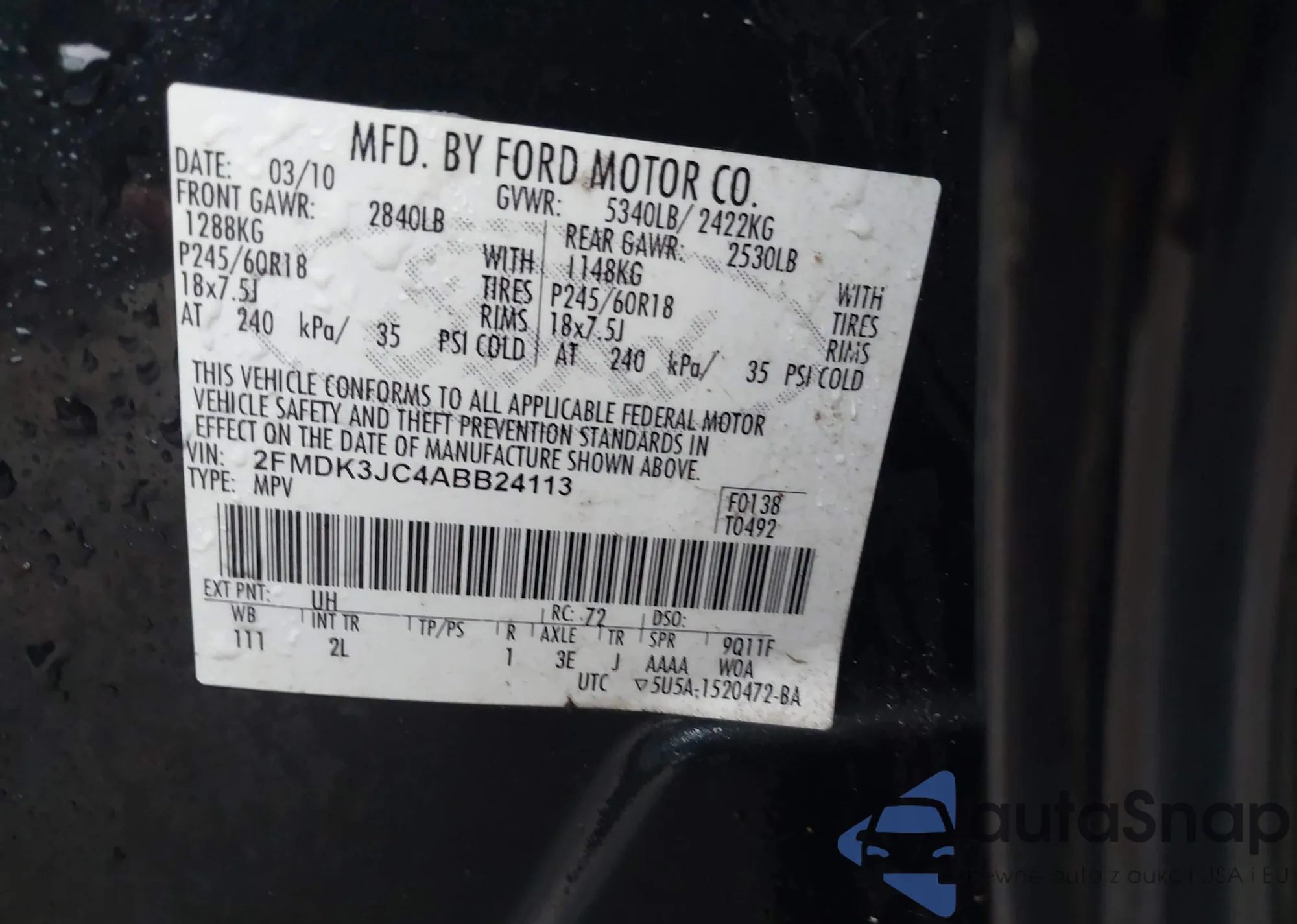 • VIN 2FMDK3JC4ABB24113