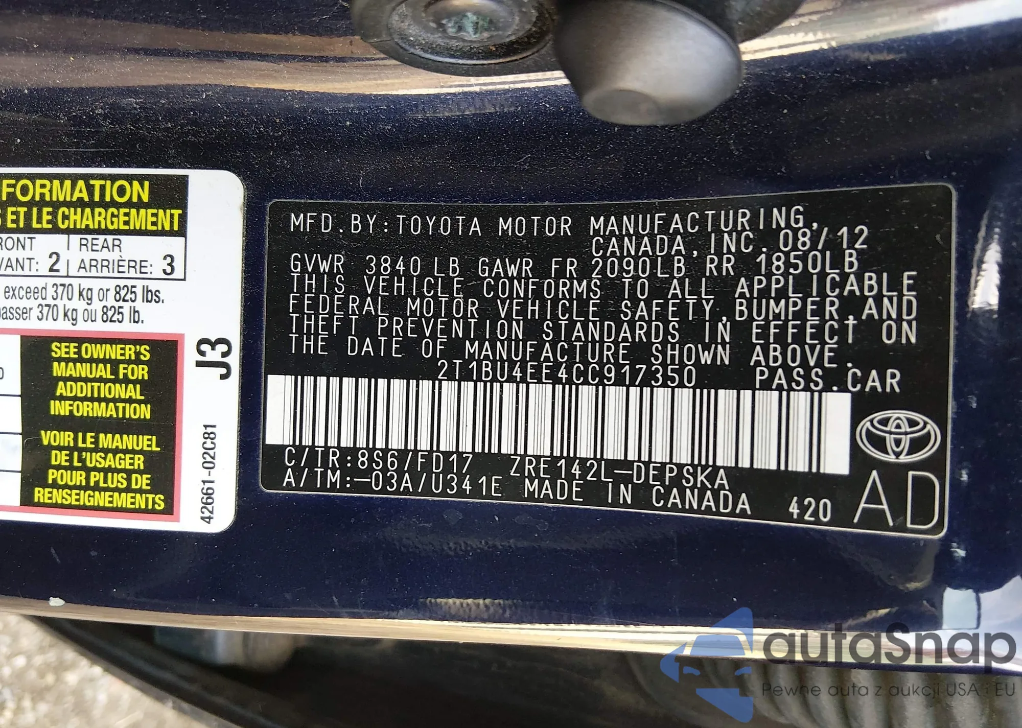 • VIN 2T1BU4EE4CC917350