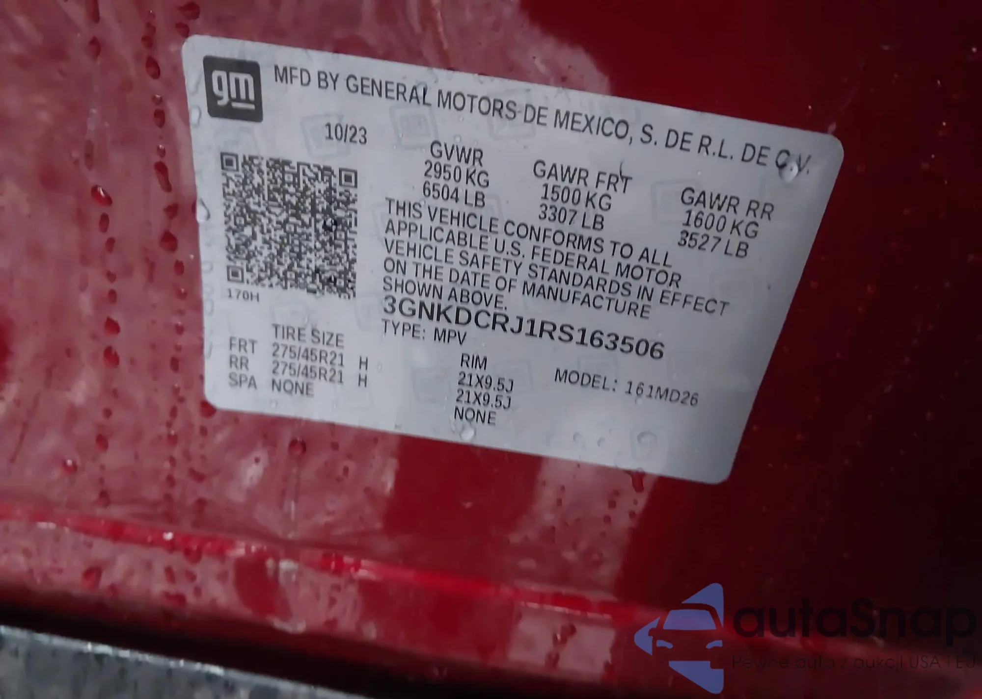 LOT: 43837629 VIN: 7FARS4H45SE007356