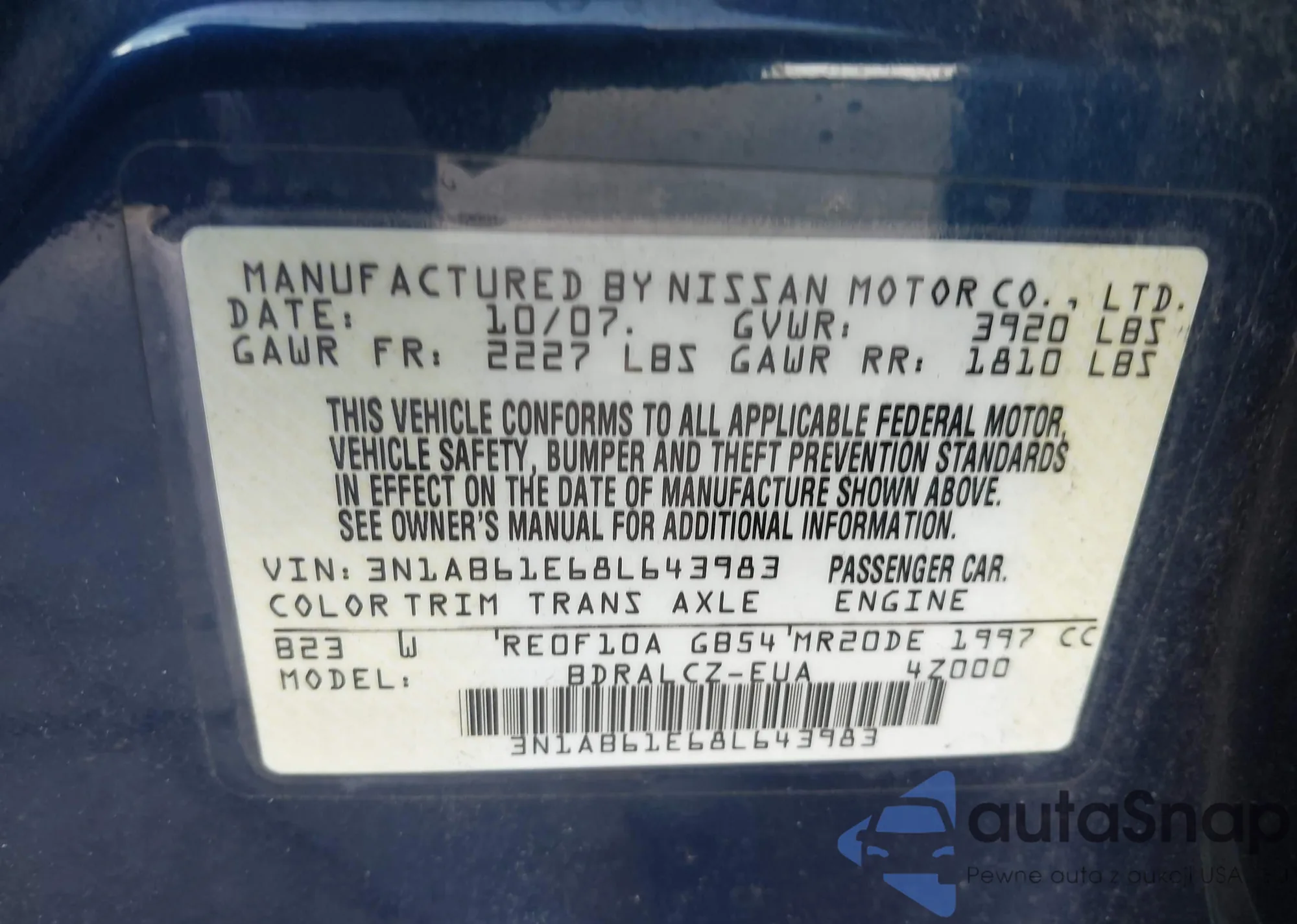 • VIN 3N1AB61E68L643983