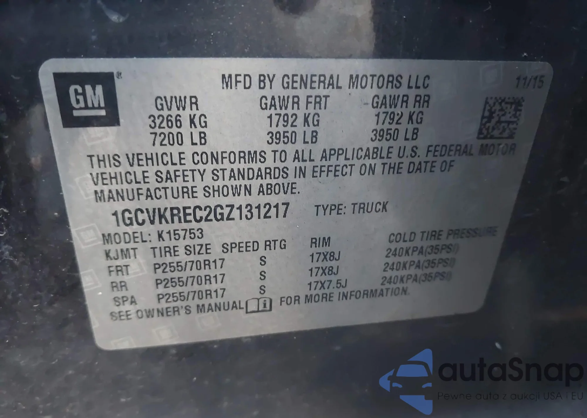 • VIN 1GCVKREC2GZ131217