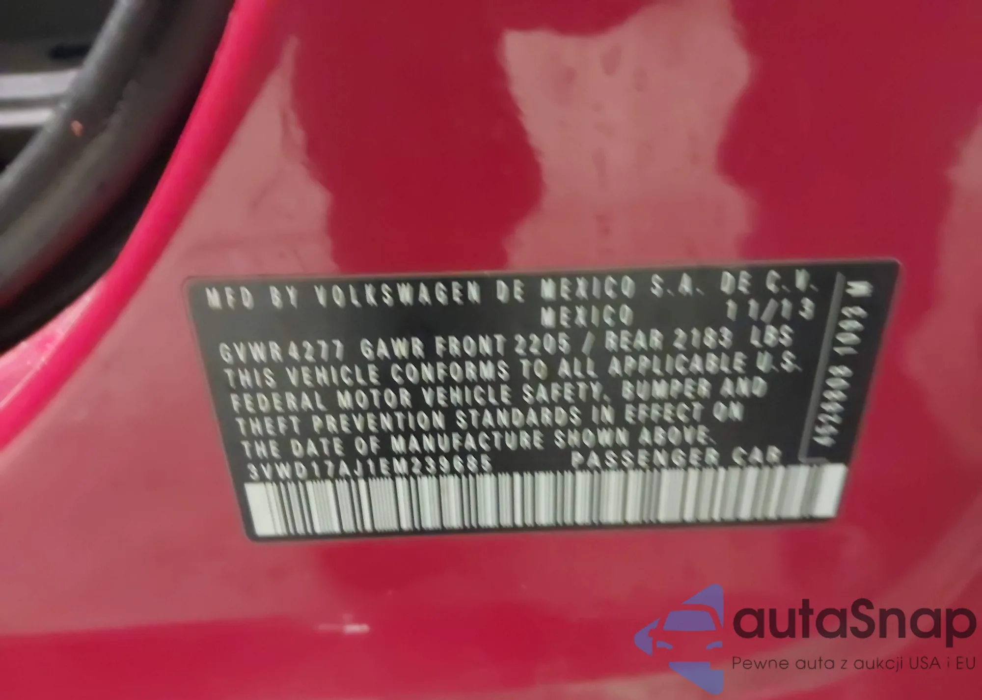 • VIN 3VWD17AJ1EM239685