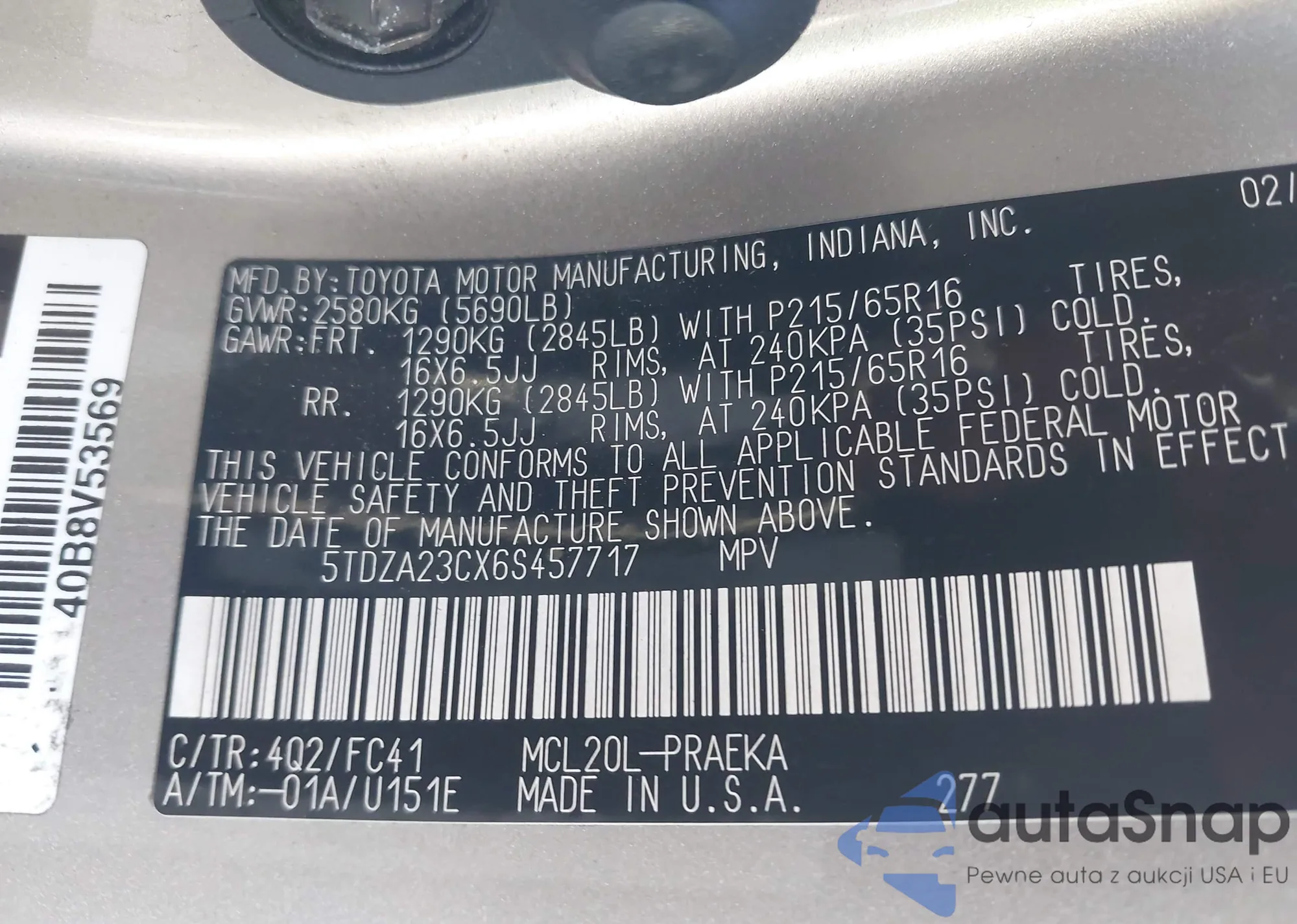 LOT: 43895623 VIN: 5TFAZ5CN9MX102084