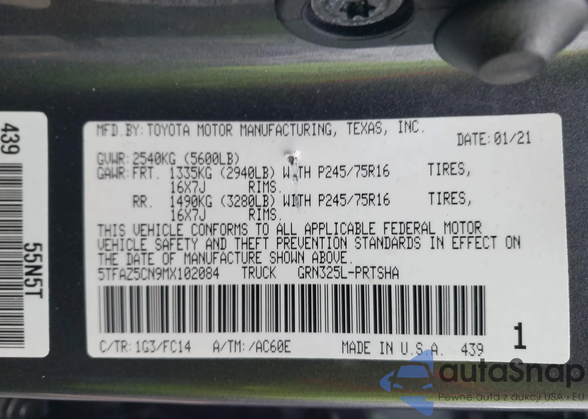 • VIN 5TFAZ5CN9MX102084
