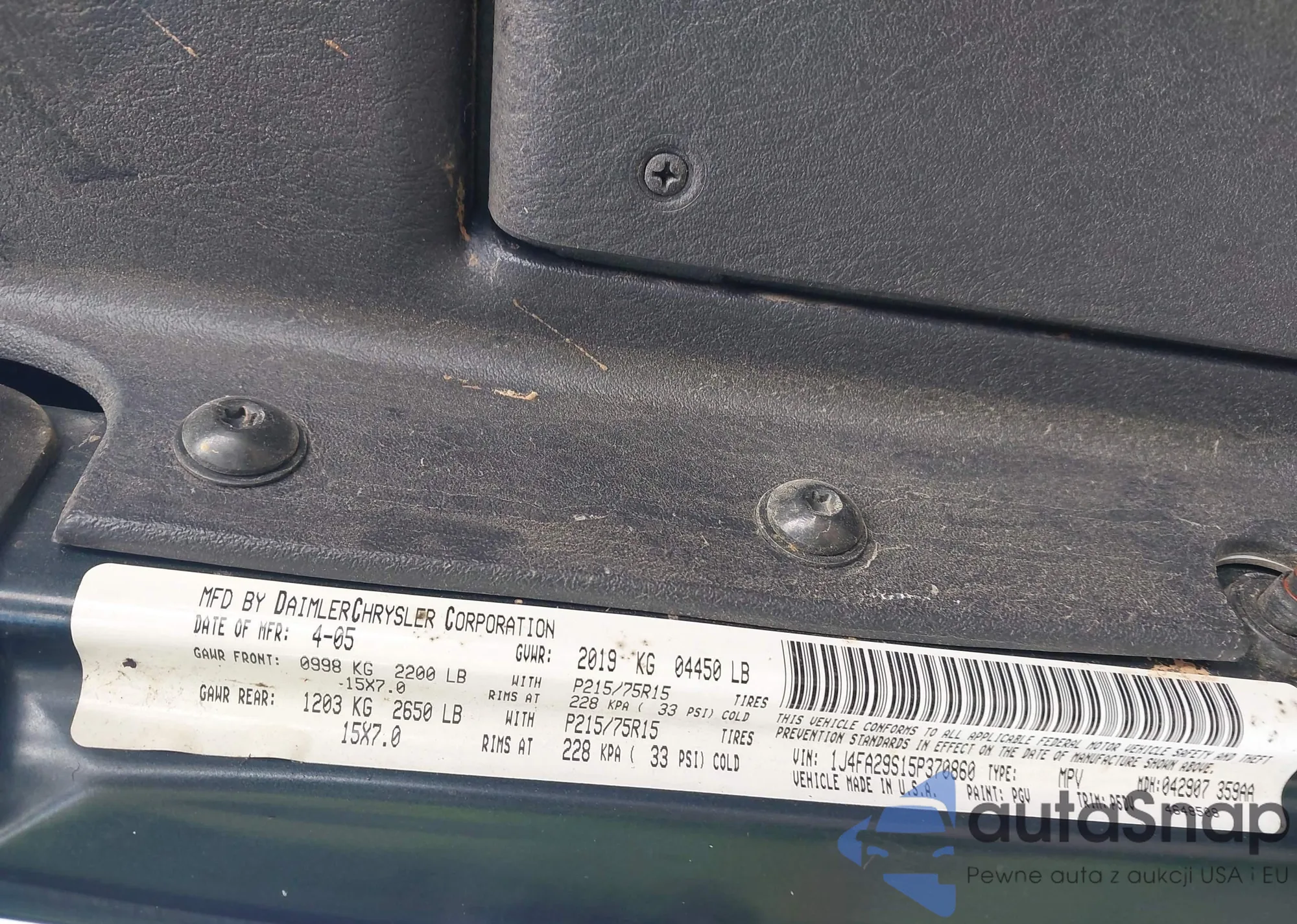 LOT: 43405088 VIN: 1J4FA29S15P370860