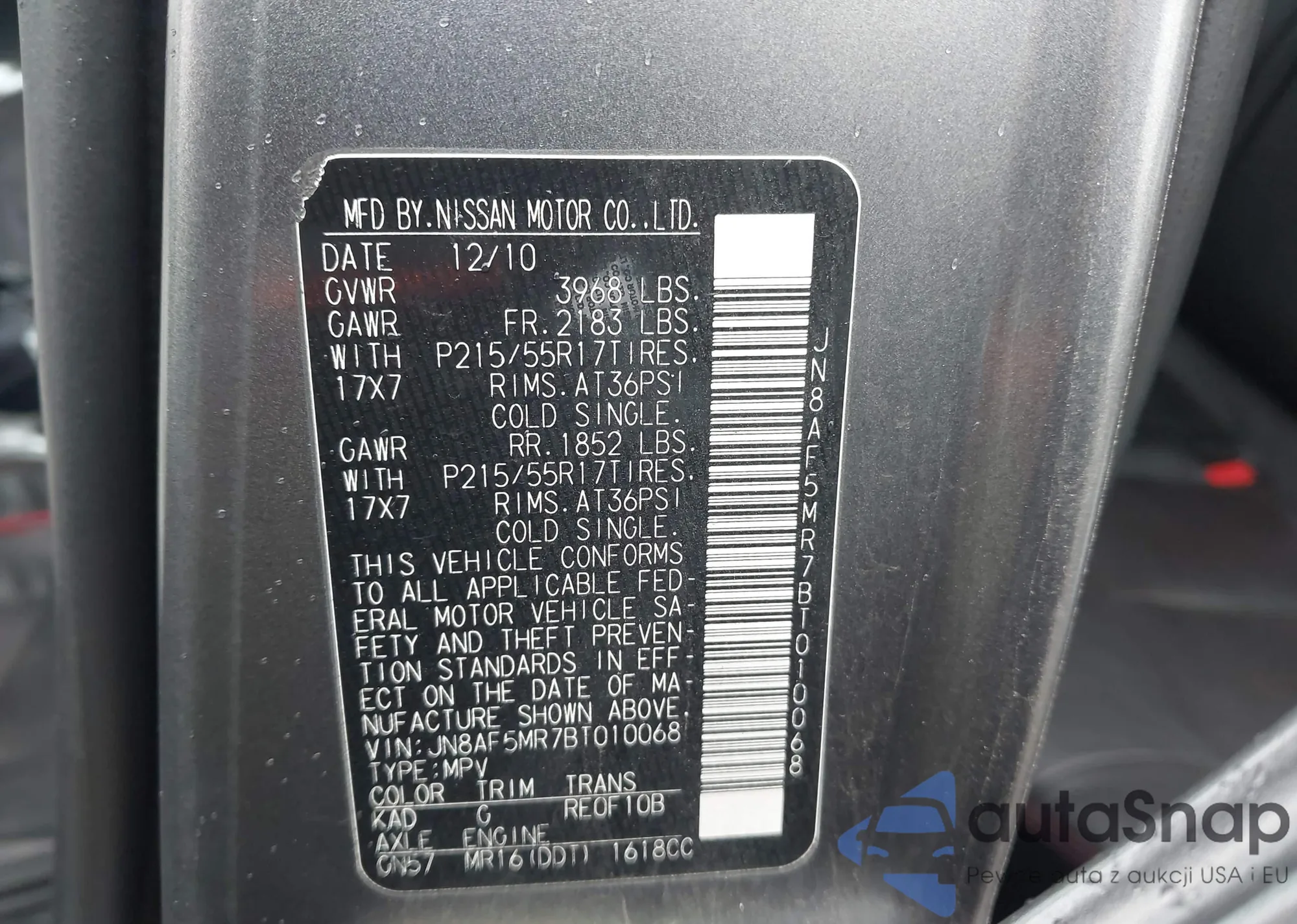 LOT: 43974595 VIN: JNKCV54E15M423900