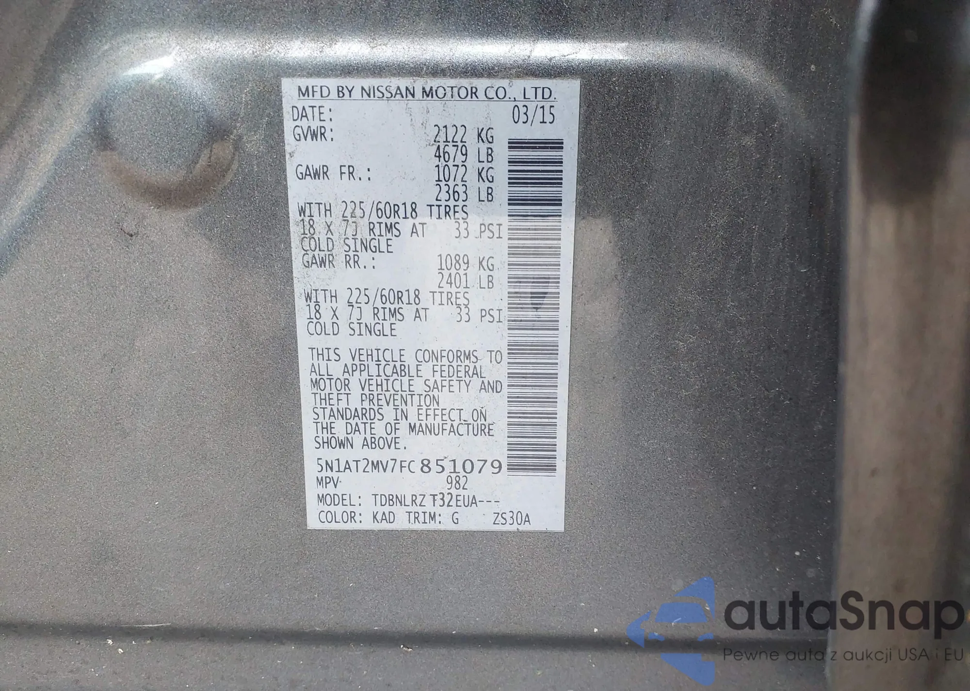 LOT: 43887438 VIN: 5N1AT2MV7FC851079
