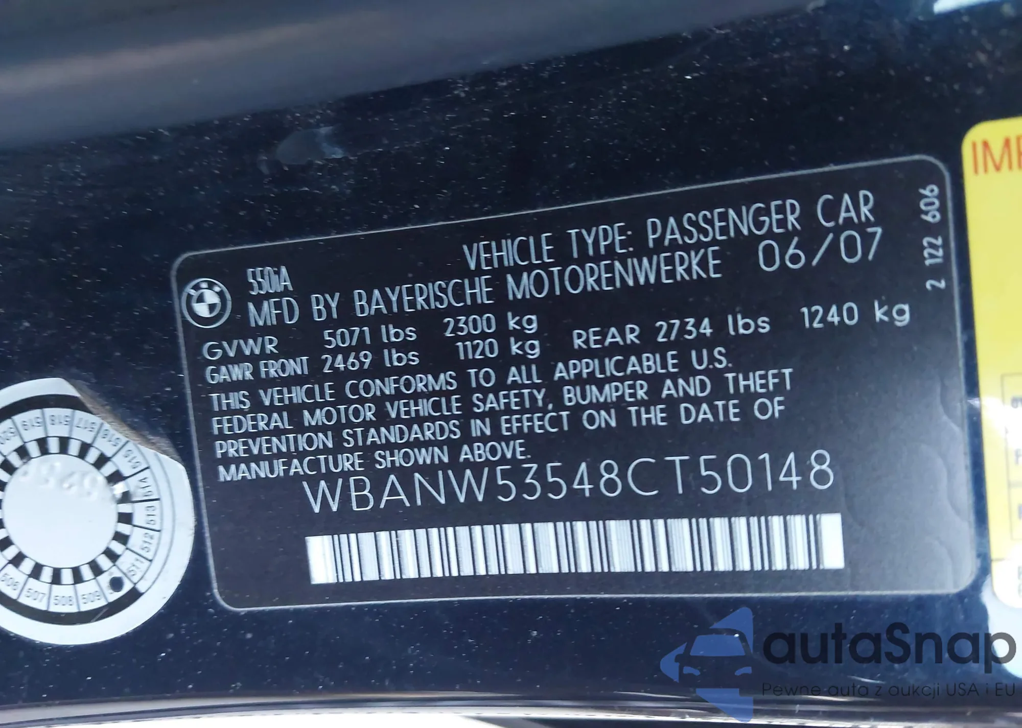 • VIN WBANW53548CT50148