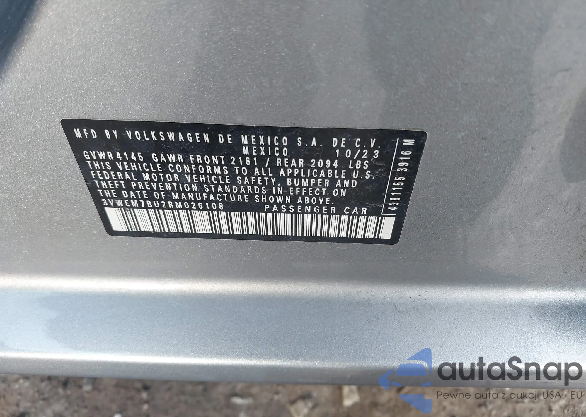 • VIN 3VWEM7BU2RM026108