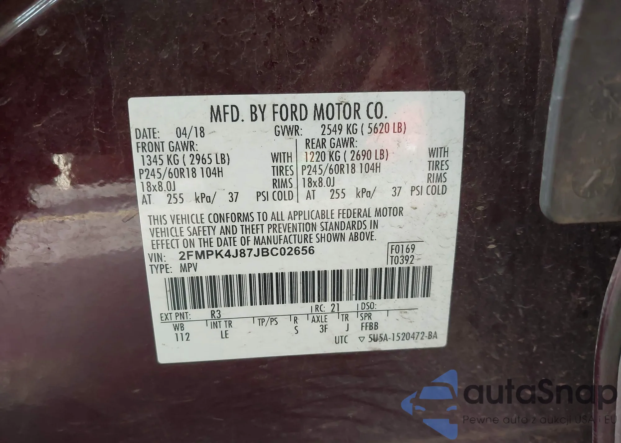 • VIN 2FMPK4J87JBC02656