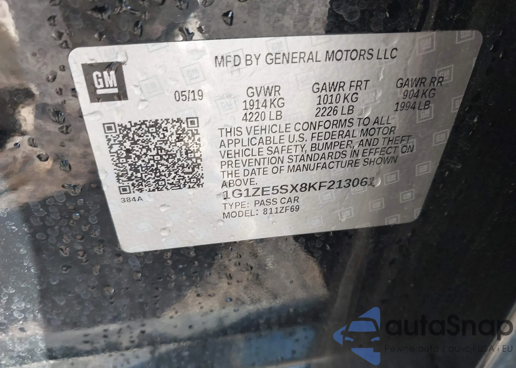 • VIN 1G1ZE5SX8KF213061