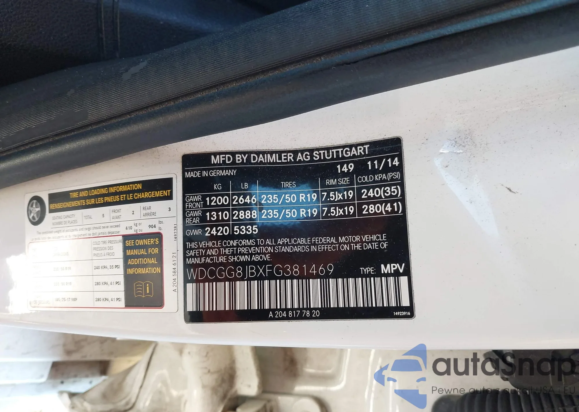 • VIN WDCGG8JBXFG381469