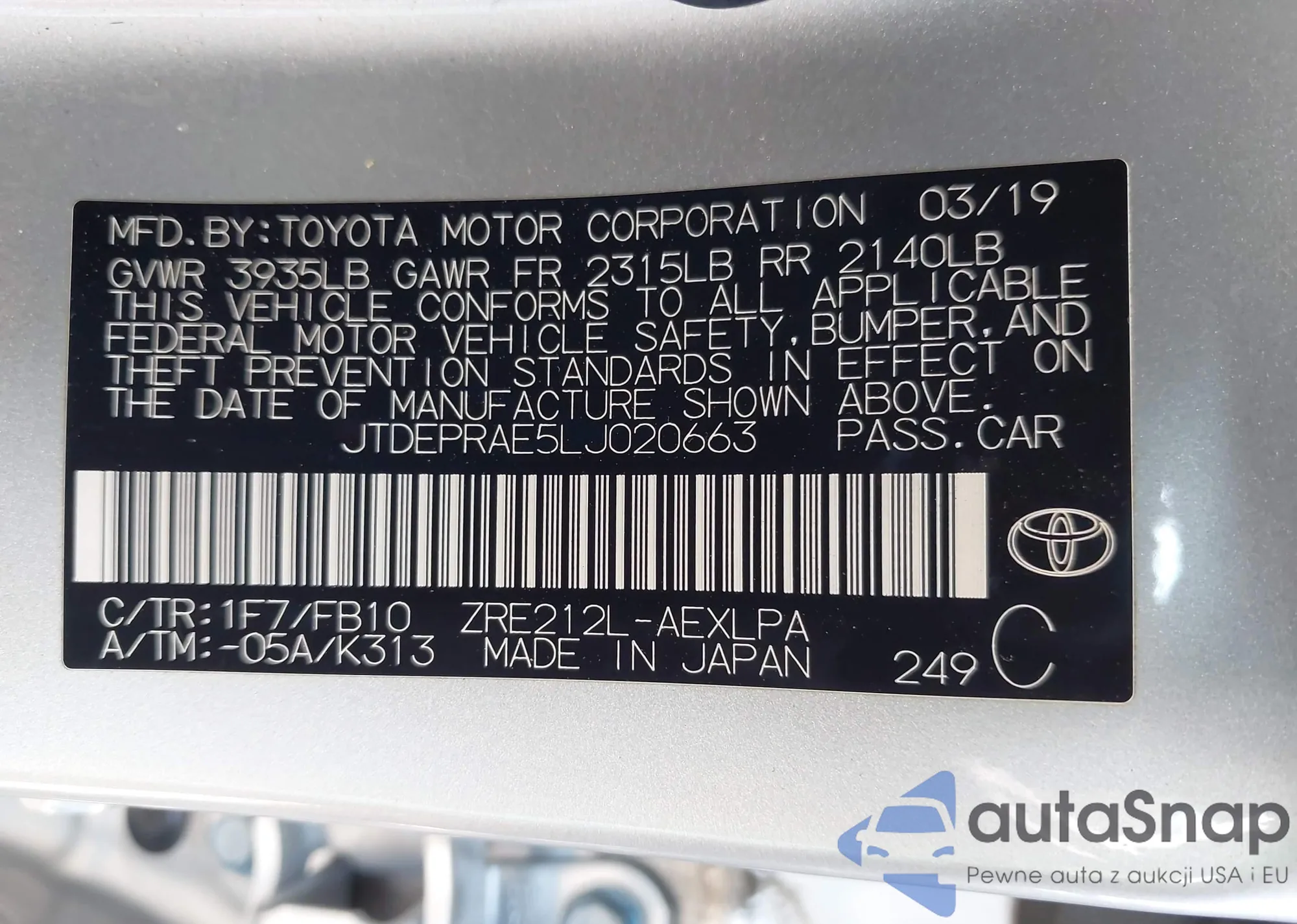LOT: 43920507 VIN: JA4AD3A37LZ036734