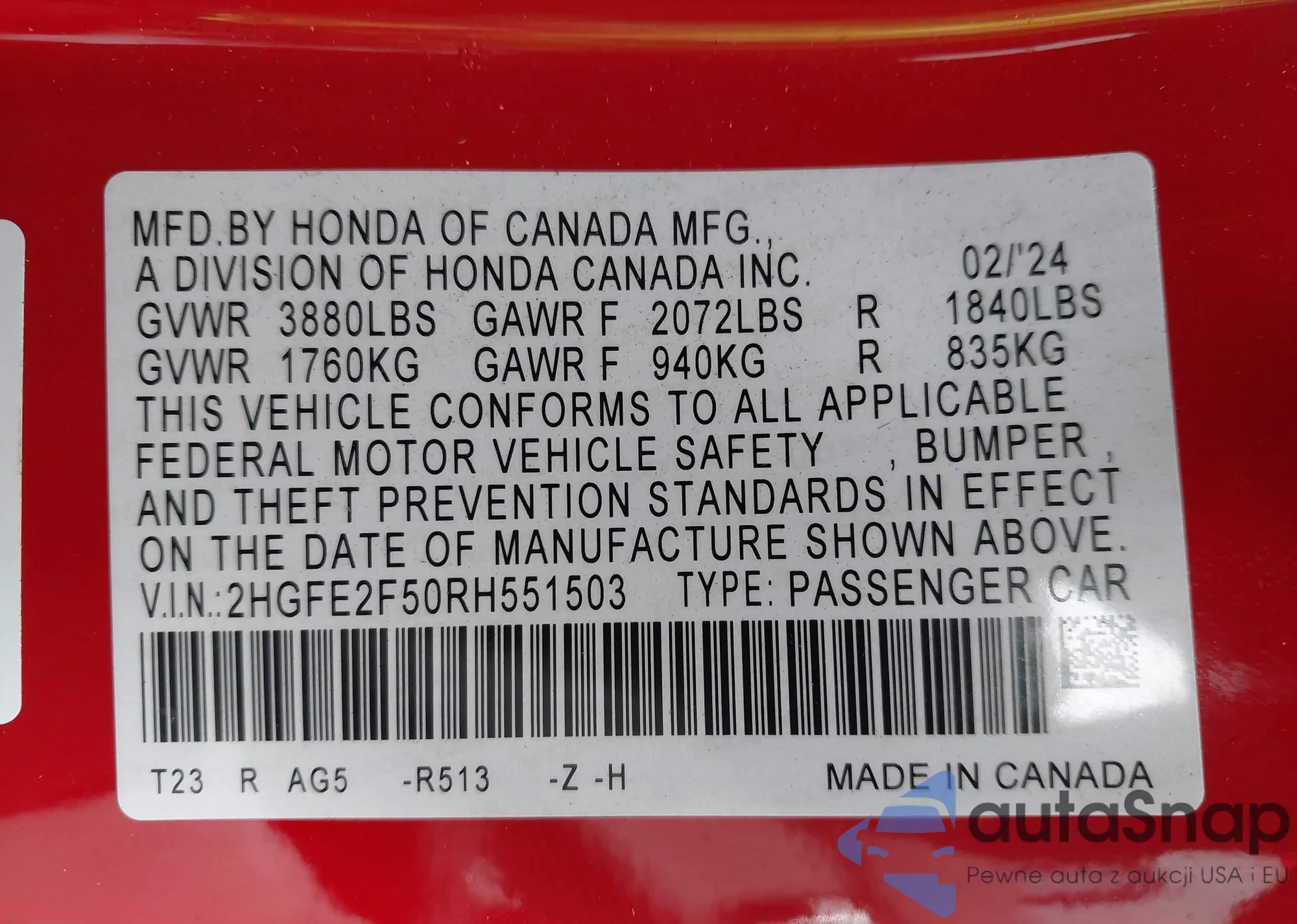 LOT: 44092584 VIN: JHMAP11431T000371