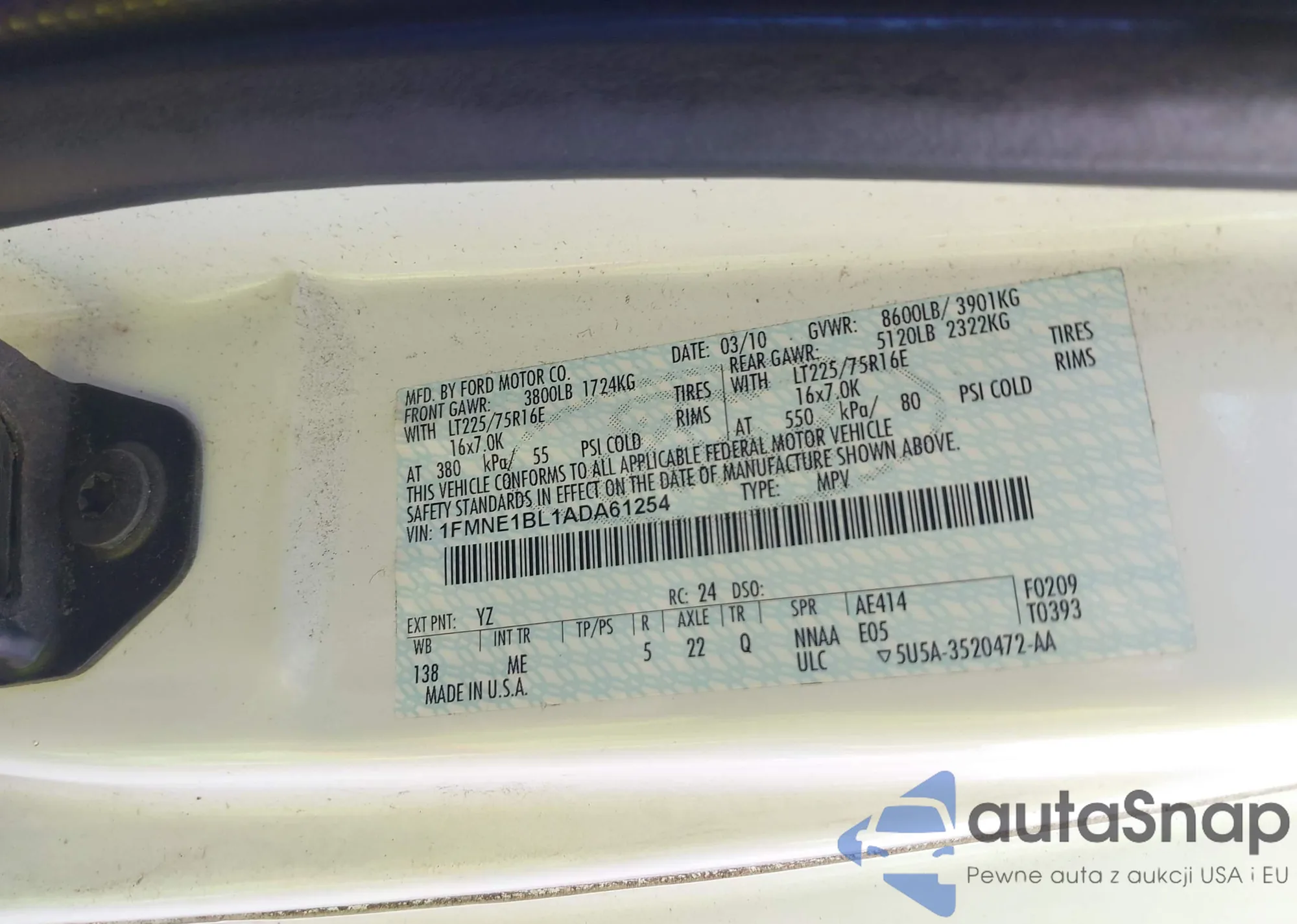 LOT: 44093192 VIN: 1FMNE1BL1ADA61254