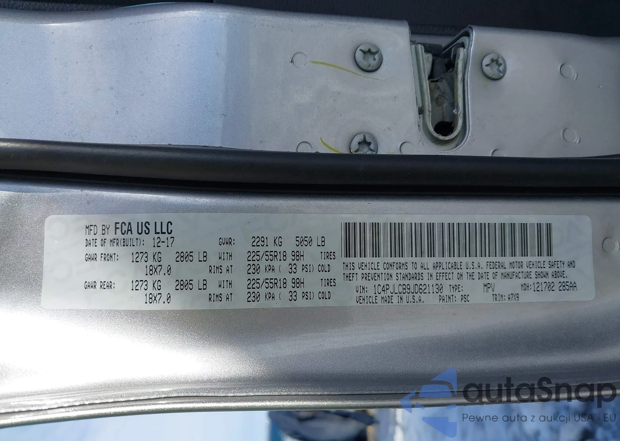 • VIN 1C4PJLCB9JD621130