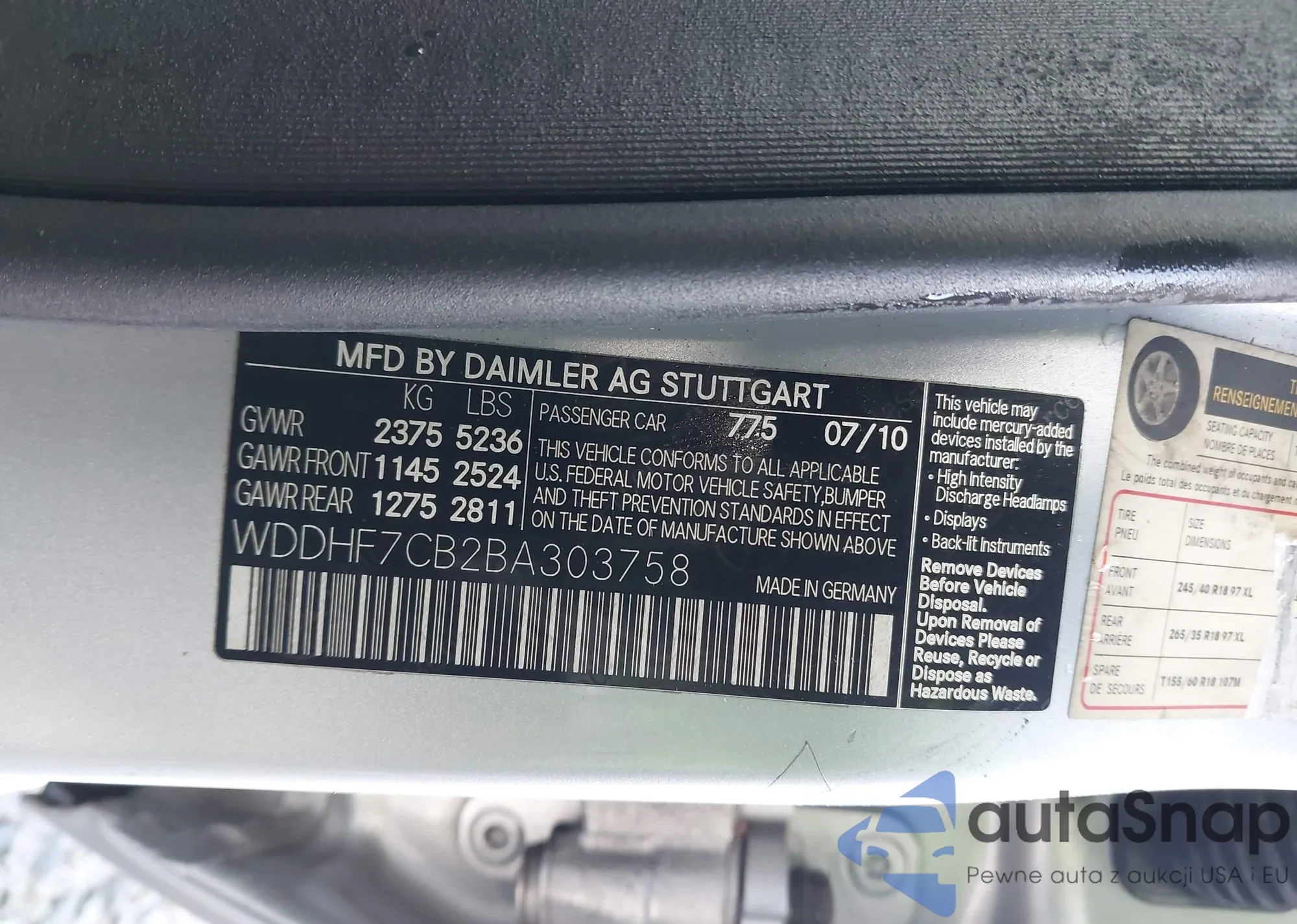 • VIN WDDHF7CB2BA303758