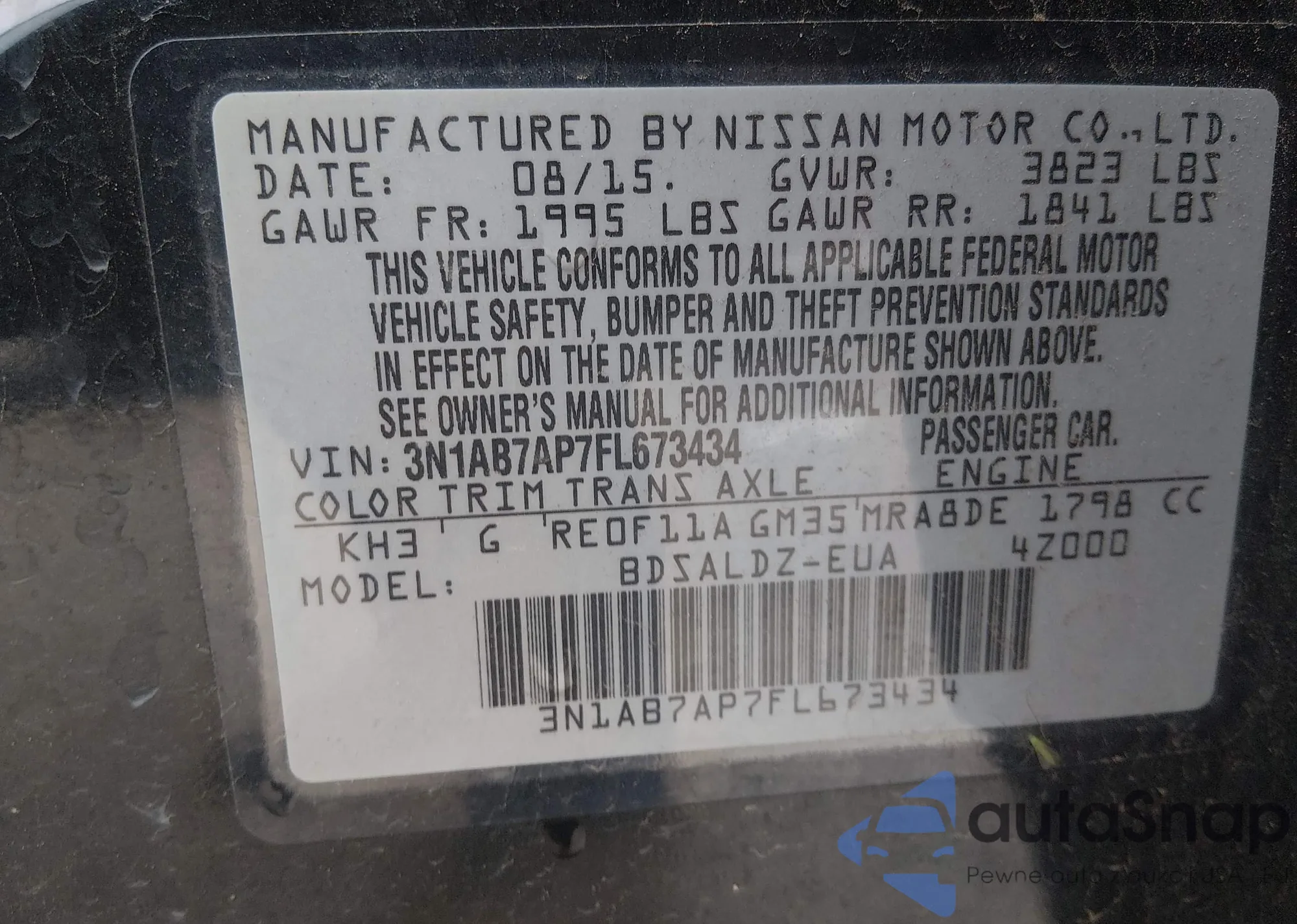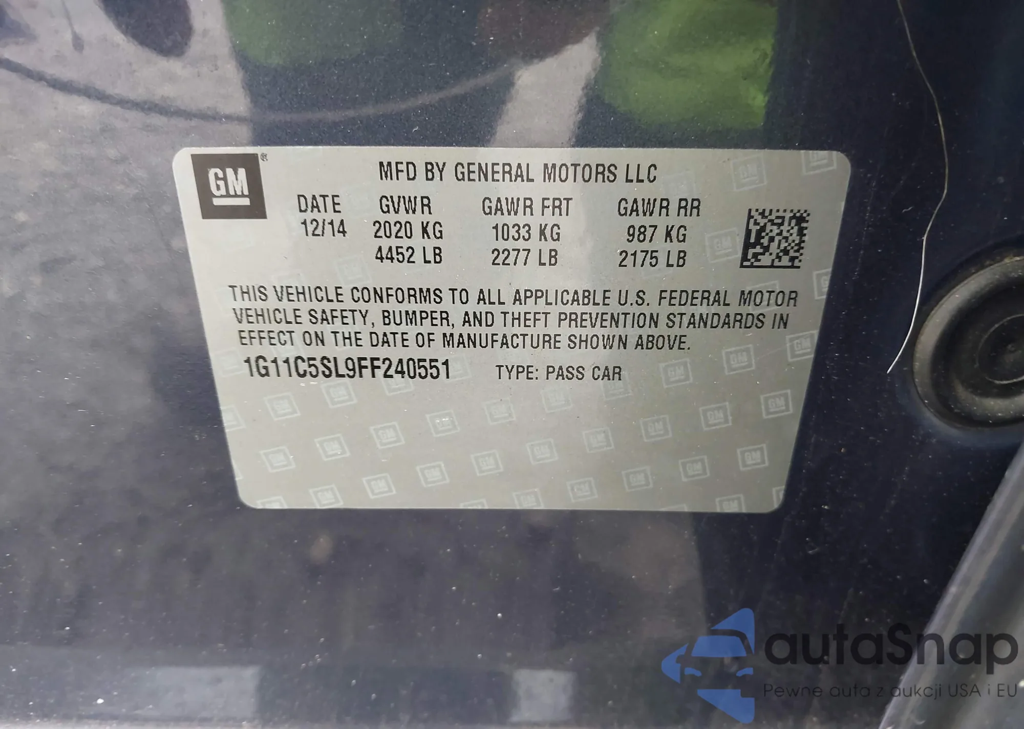 LOT: 43739232 VIN: 1G11C5SL9FF240551