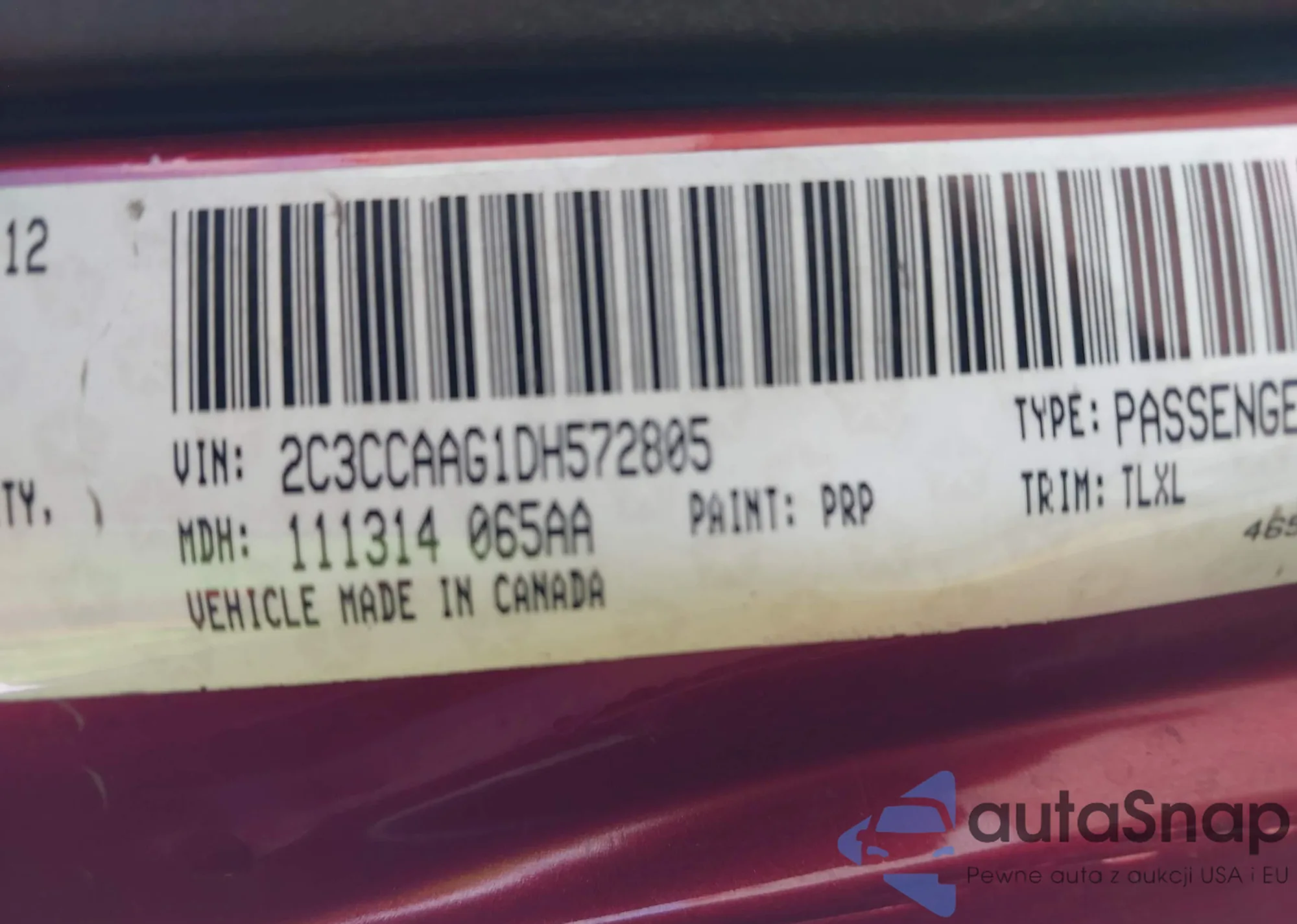 • VIN 2C3CCAAG1DH572805