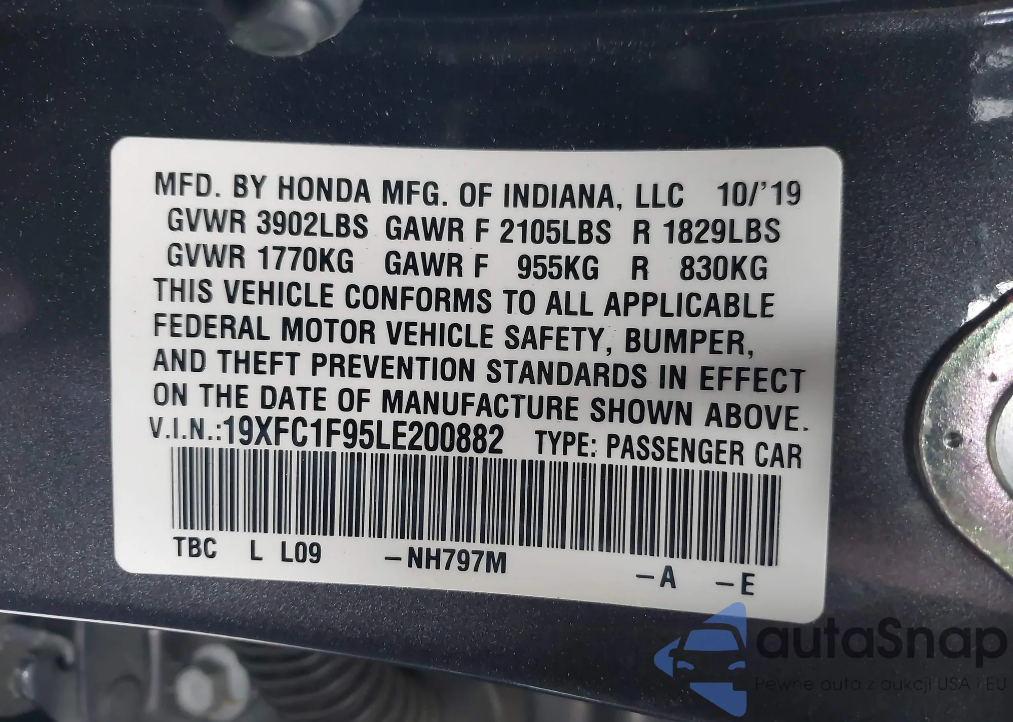 • VIN 19XFC1F95LE200882