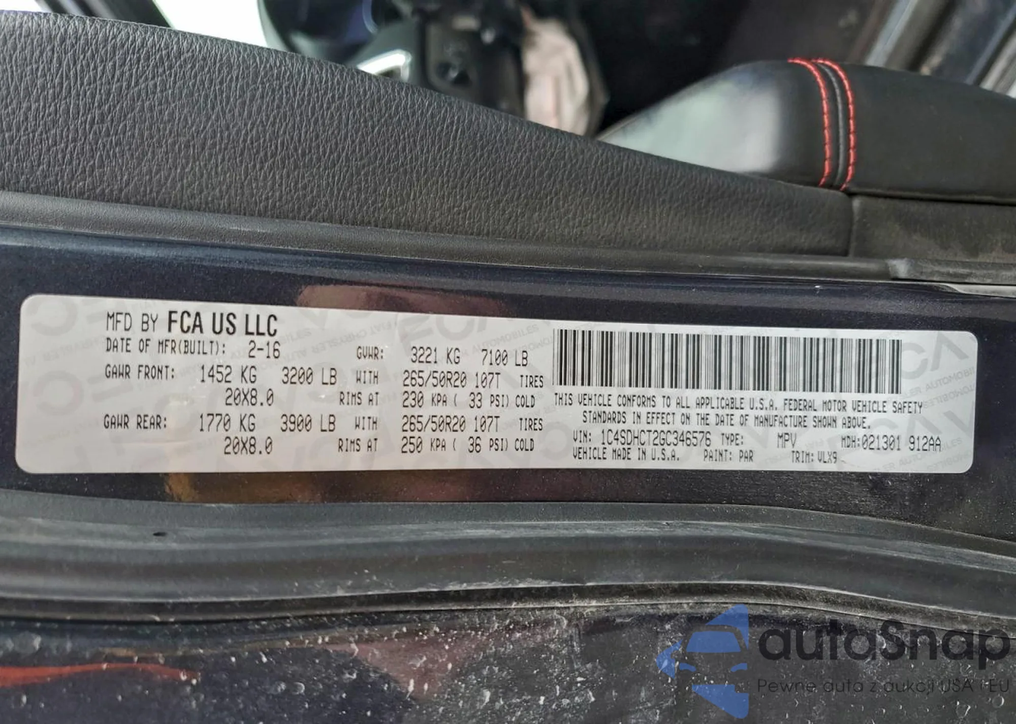 LOT: 98810255 VIN: 1C4SDHCT2GC346576
